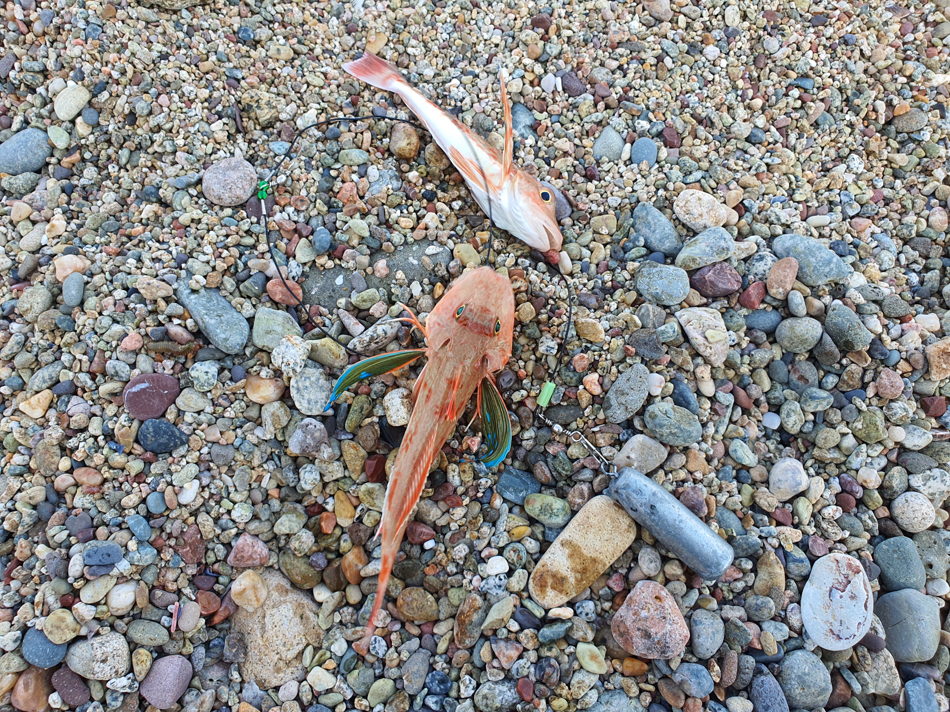 미끼도 염장지렁이로 같은걸 쓰는데 뭐가 다를까 생각하던 중에 입질이 옵니다. 톡톡치기도 하고, 쭈욱 잡아당기기도 하는 입질에 올리니 성대가 쌍걸이로 올라오네요.
