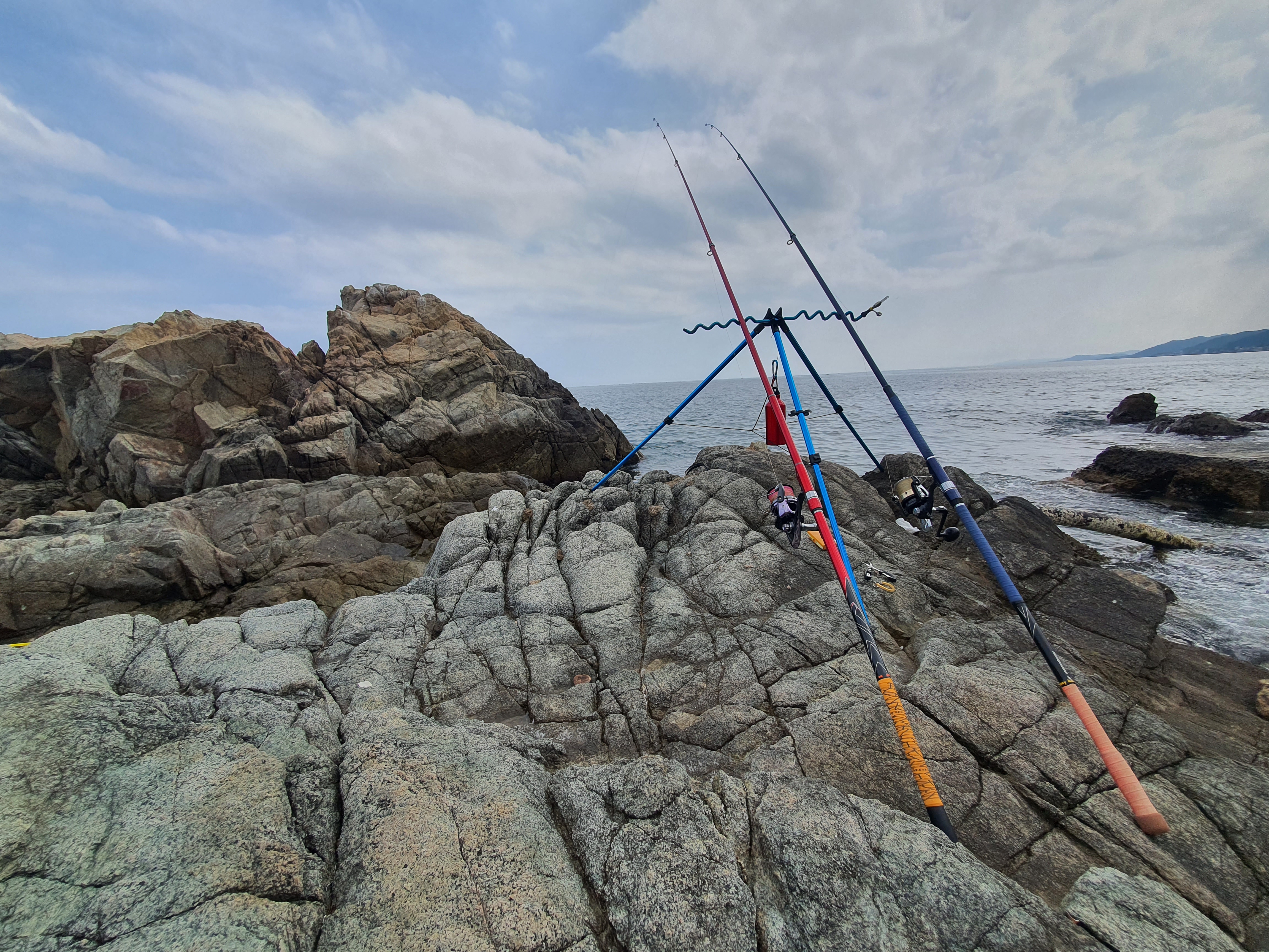 보다 안전한 갯바위의 비밀포인트에서 쌍포를 펴 봅니다. 캐스팅하자마자 입질이 우두둑 들어오네요. 역시 믿음을 져버리지 않는 비밀포인트입니다.