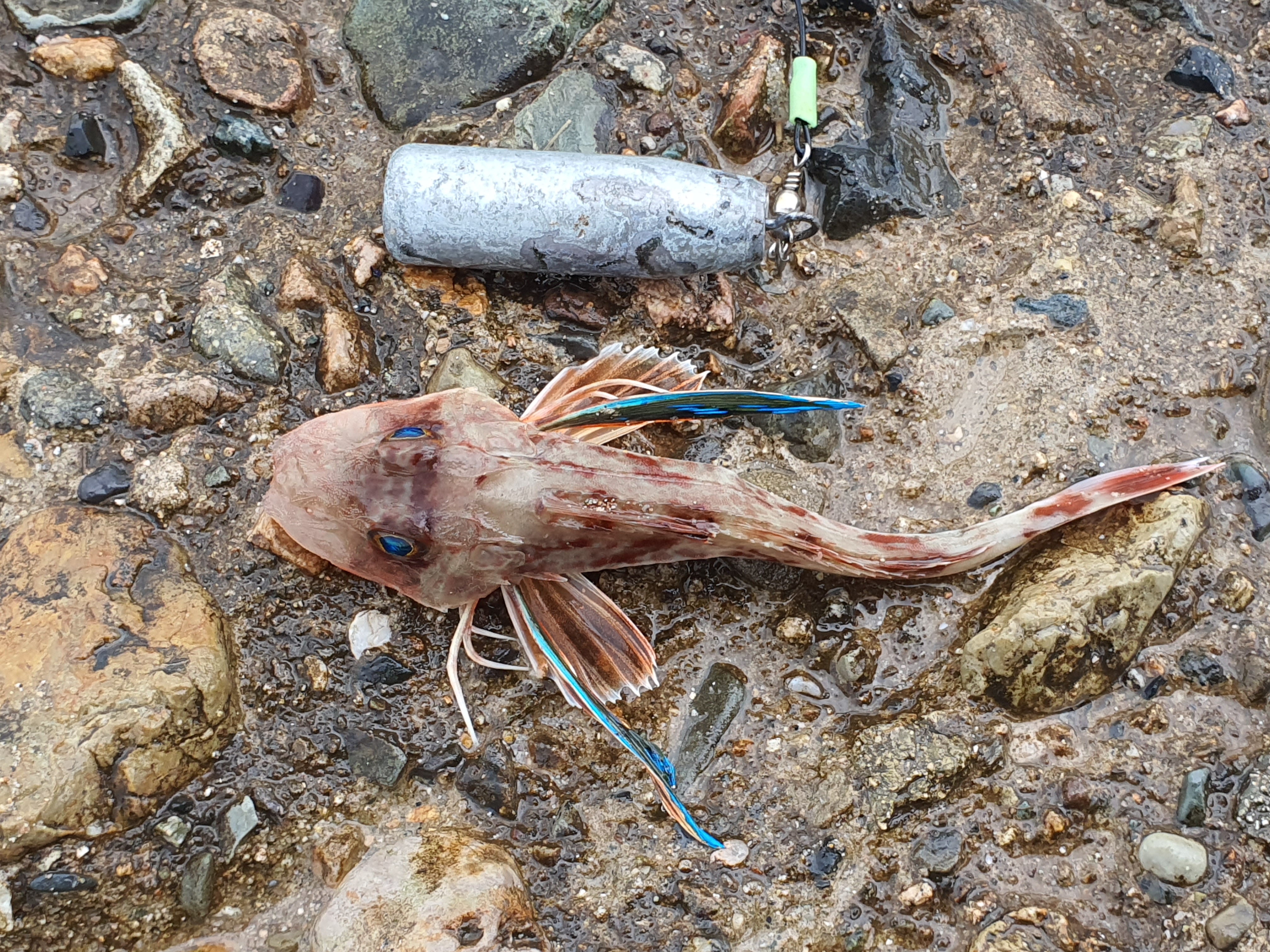 바로 옆에서 미리 하고 계시던 조사님이 묶음추를 달아 근투한 낚시대가 자리를 비운 사이 초릿대가 요동을 칩니다. 한참뒤에 오셔서 올리니 사이즈는 작지만 참도다리가 올라오더군요. 곧 도다리 시즌이 오면 다시 찾아야겠습니다.