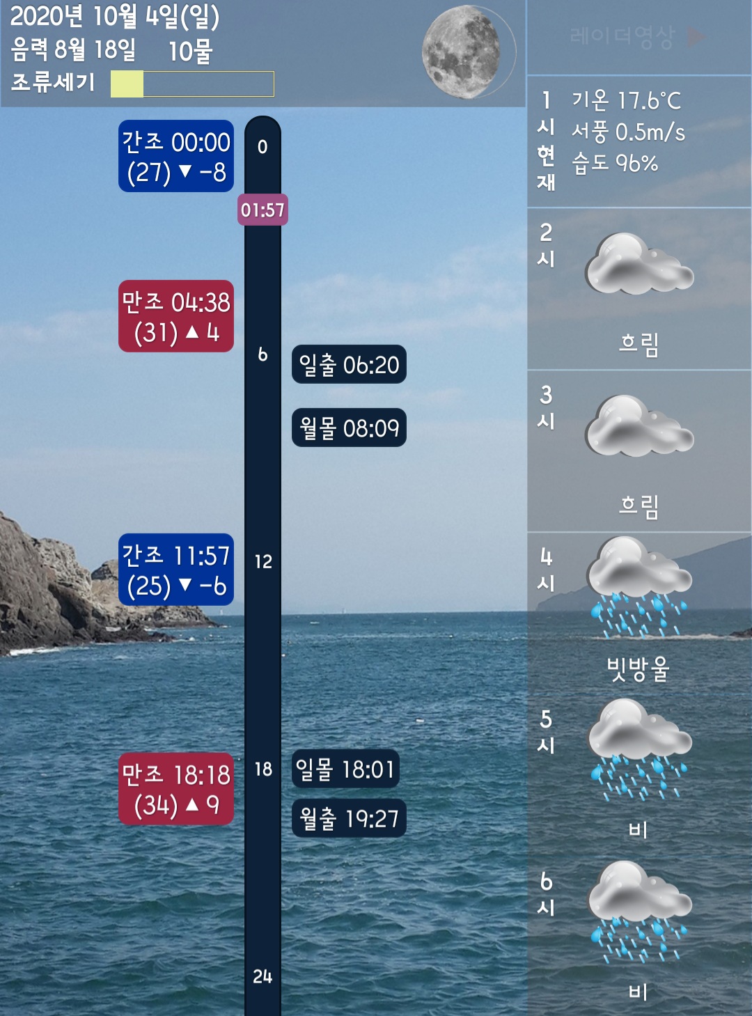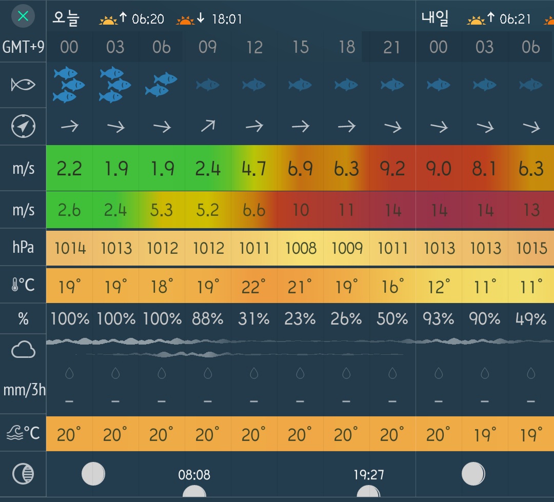 물때는 조류가 줄어드는 물때인 10물이라 썩 좋은 물때는 아닌듯 하네요.