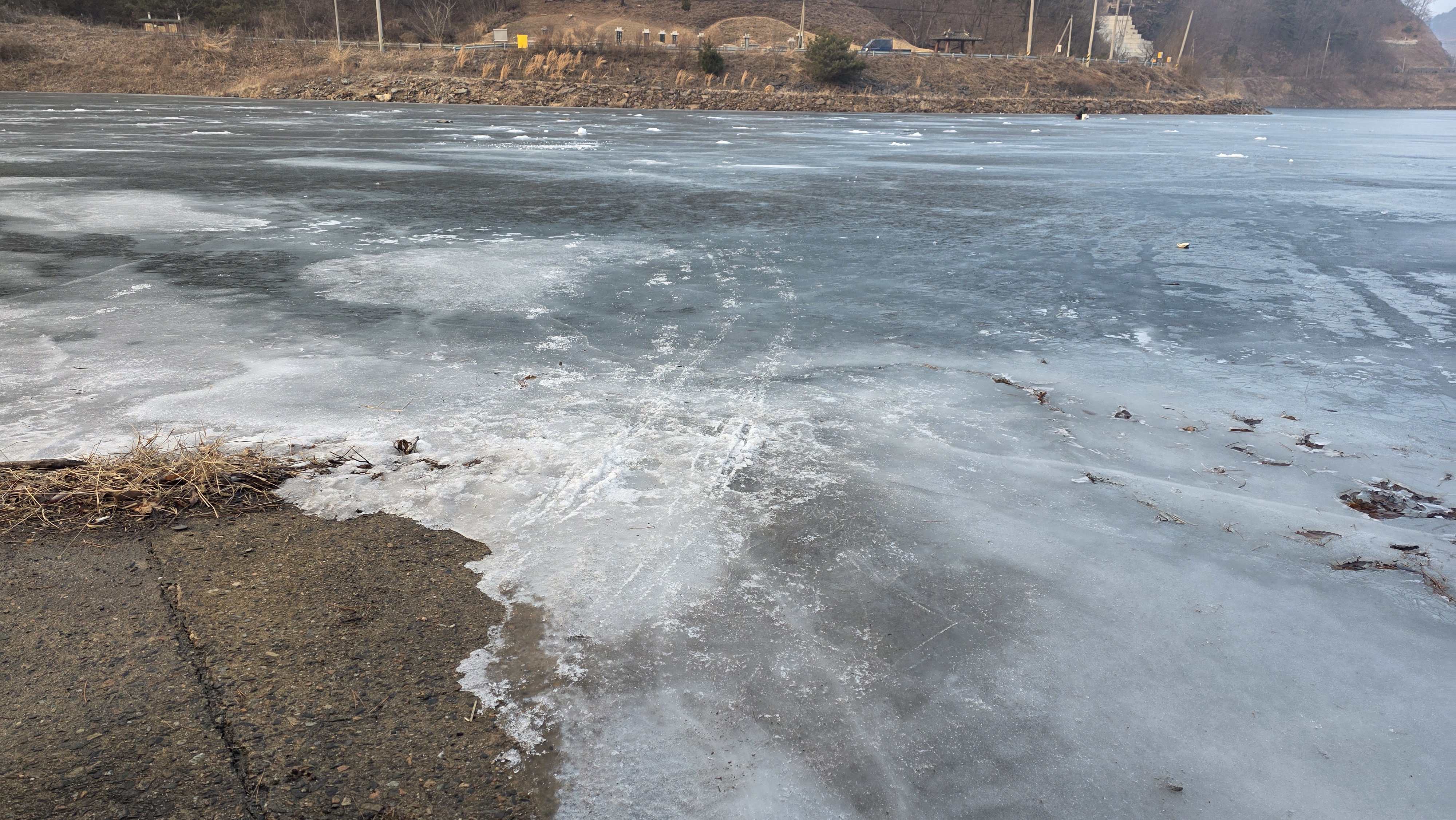 빙판을 보니 두께가 사흘전과 비슷하고 물바닥이 아니어서 해 볼만 하더군요.