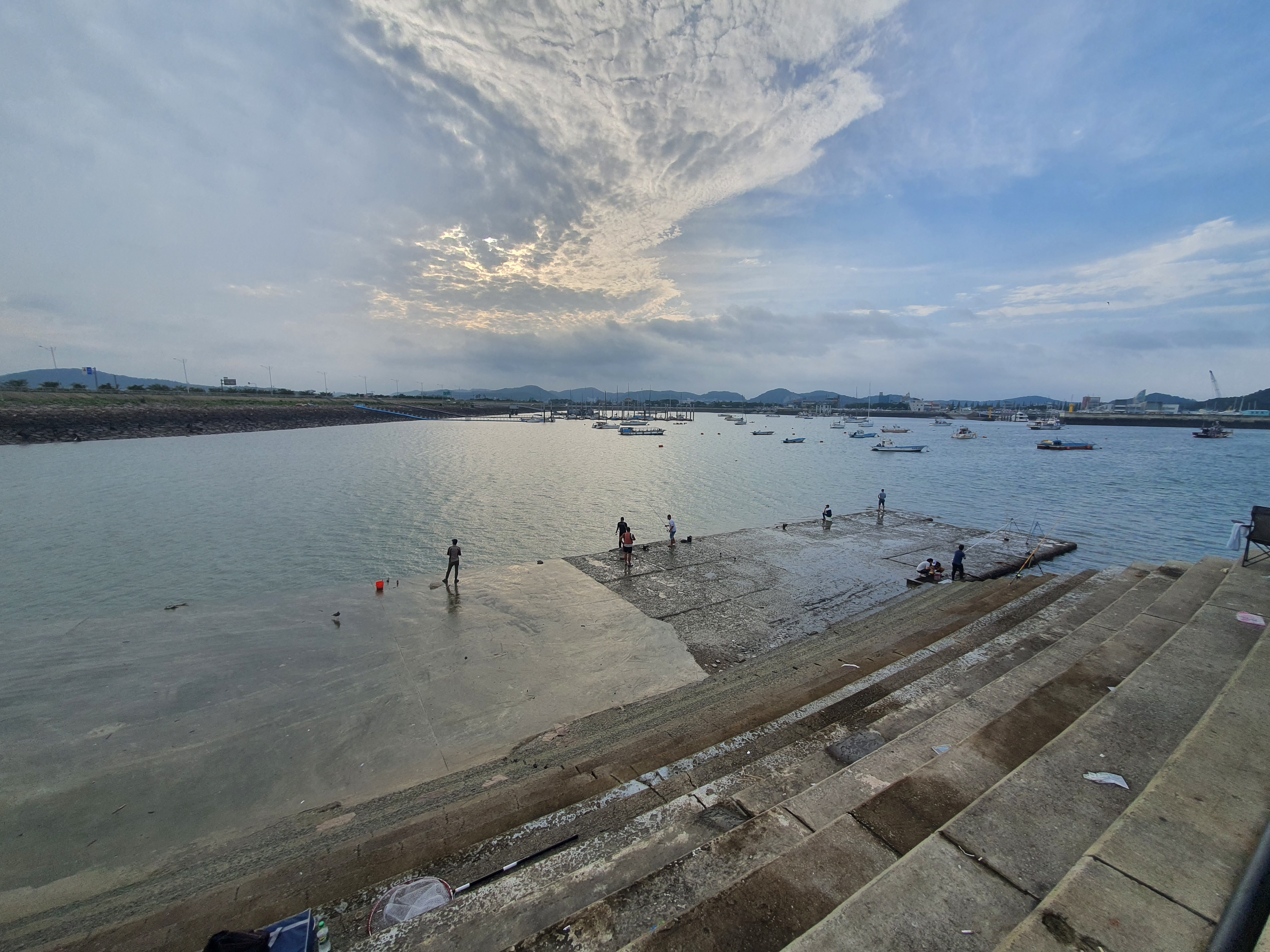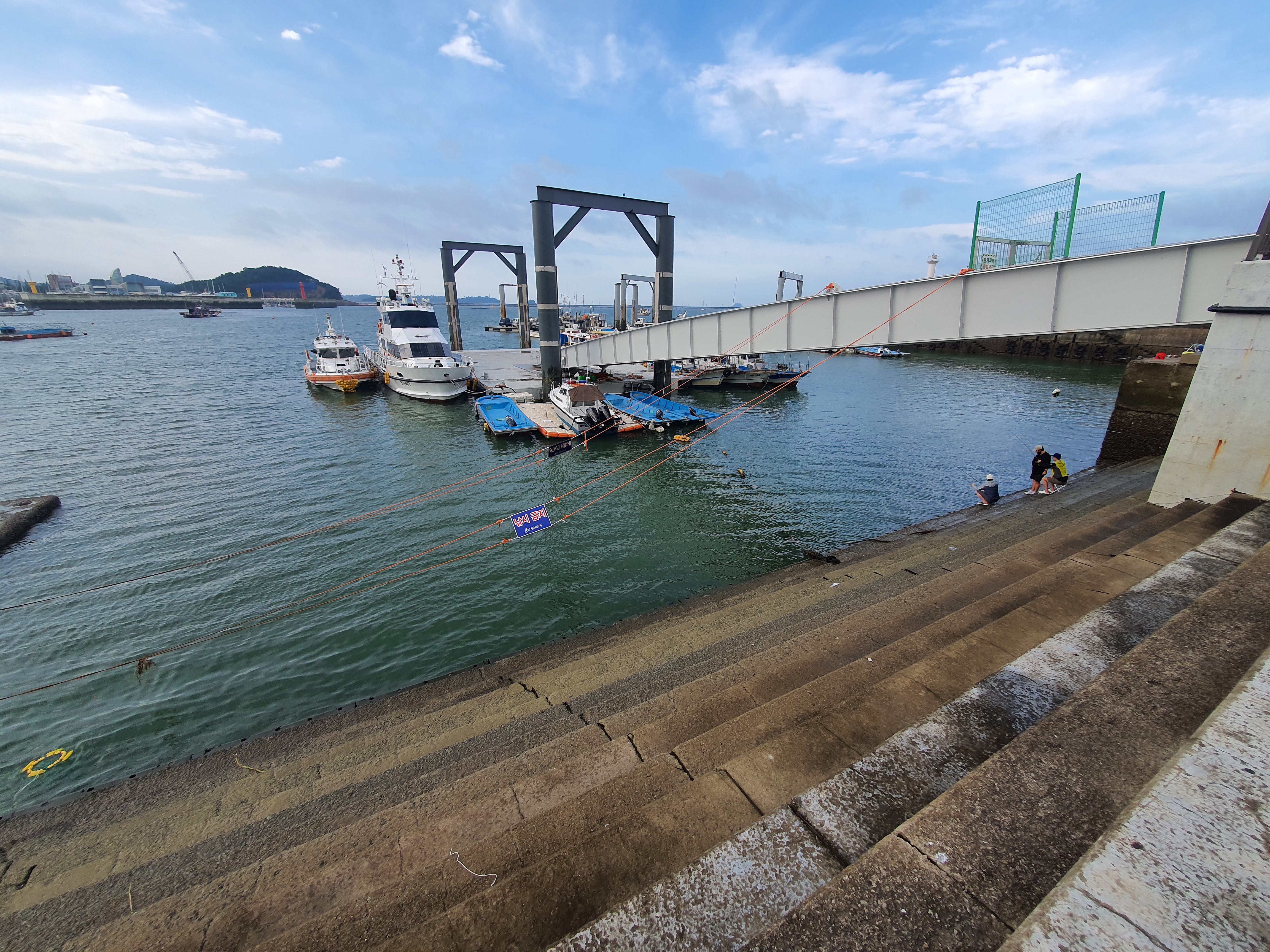 더 우측으로 탄도방조제가 보이는 포인트입니다. 물때에 따라 만조가 되면 넓은 콘크리트 바닥은 물에 잠기는데, 물이 빠지면 많은 분들이 찌낚을 하시더군요. 젼체적으로 콘크리트 발판이라 편안하게 낚시를 즐길 수 있습니다.