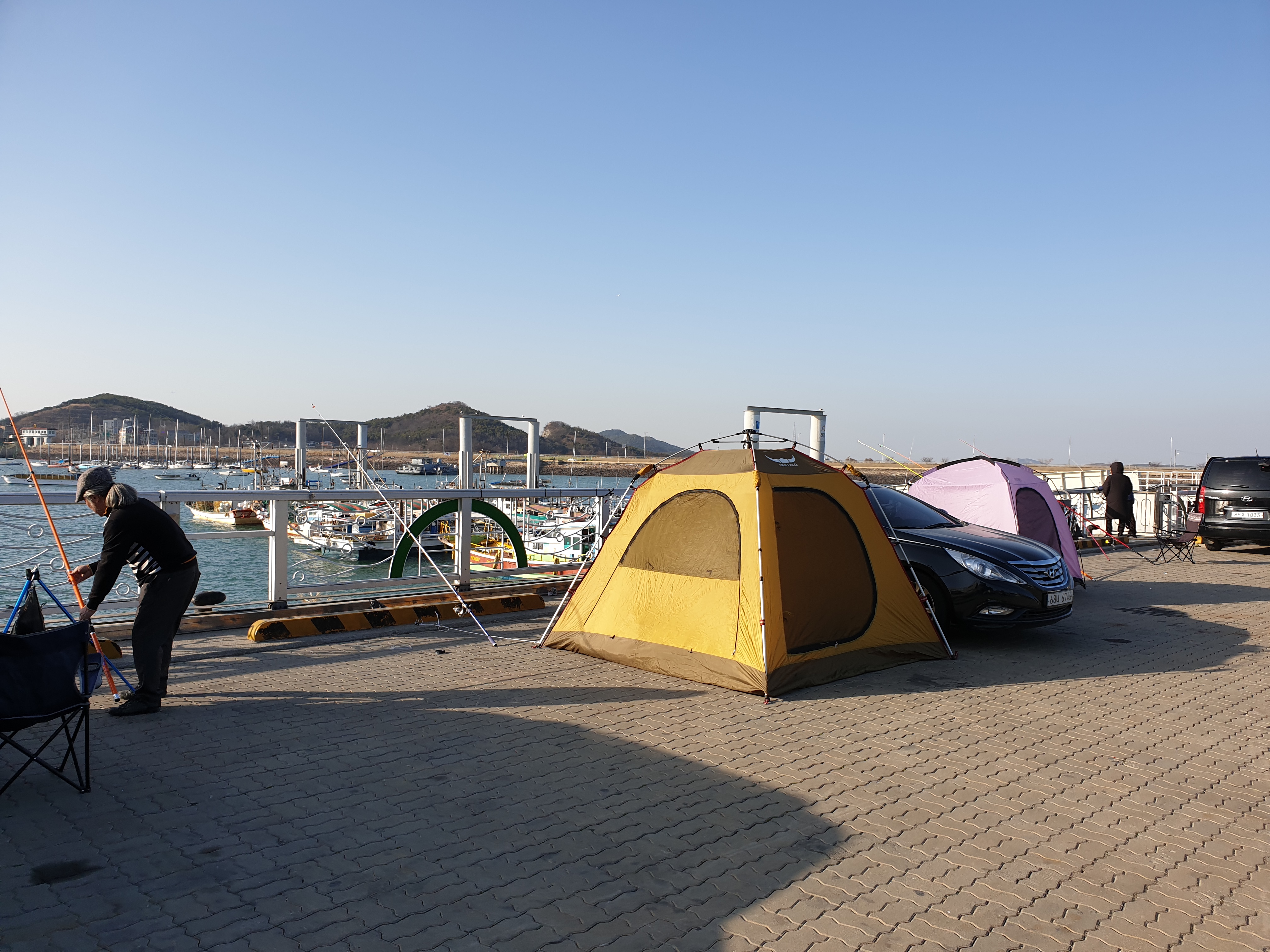지금도 바로 앞쪽에 주차를 하고 텐트를 치고 낚시를 할 수 있는지 모르겠으나, 겨울철 사람이 많이 없을 때에는 가능하지 않나 생각됩니다.