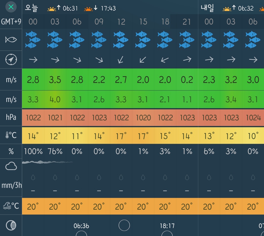 □ 바다상황 : 바람 2~3단, 파도 없음, 물색 좋음