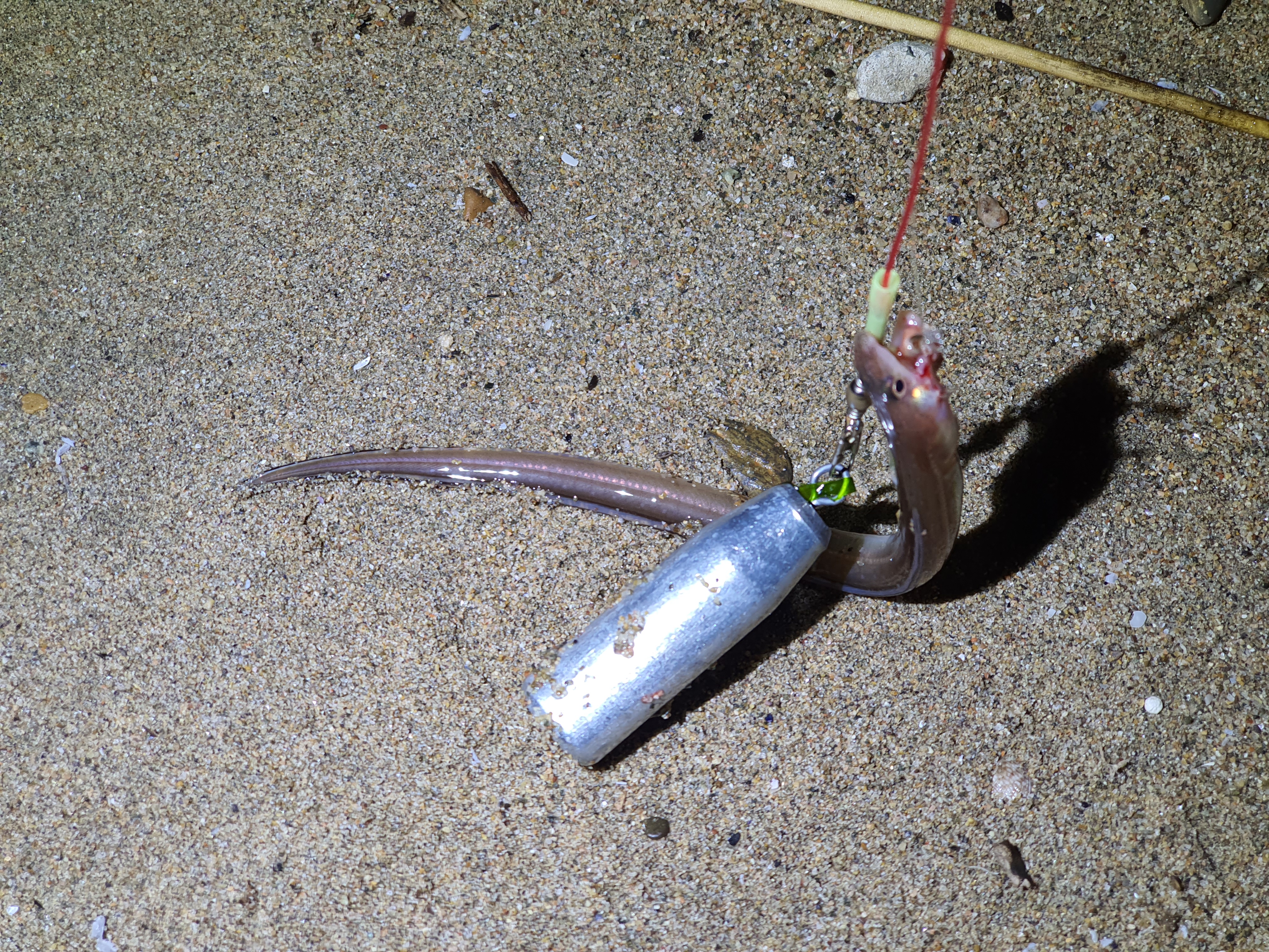 리얼 모나미 사이즈의 애장어가 올라오네요. 아랑엔젤이 박카스급 장어를 올린것에 비하여 사이즈가 너무 앙증맞아 바로 방생을 했습니다.