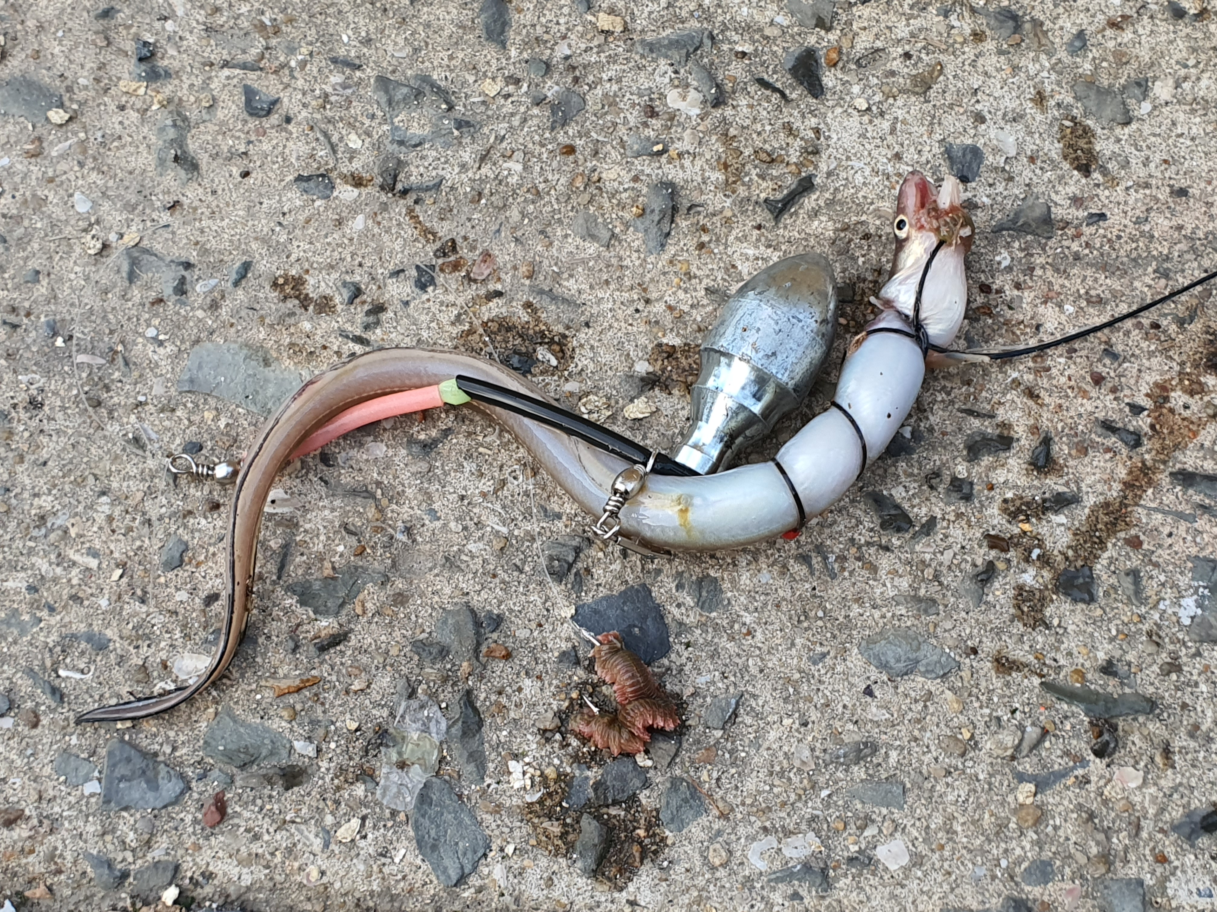 이후 약속이나 한듯이, 입질이 조용해집니다. 가끔씩 보리멸 입질에 농락을 당하며 챔질 후, 회수하면 빈 빈 채비만 올라올 뿐입니다. 그리고, 들물로 바뀌는 나서 4시가 될 무렵, 찾아온 입질에는 애장어들이 연달아 올라옵니다.