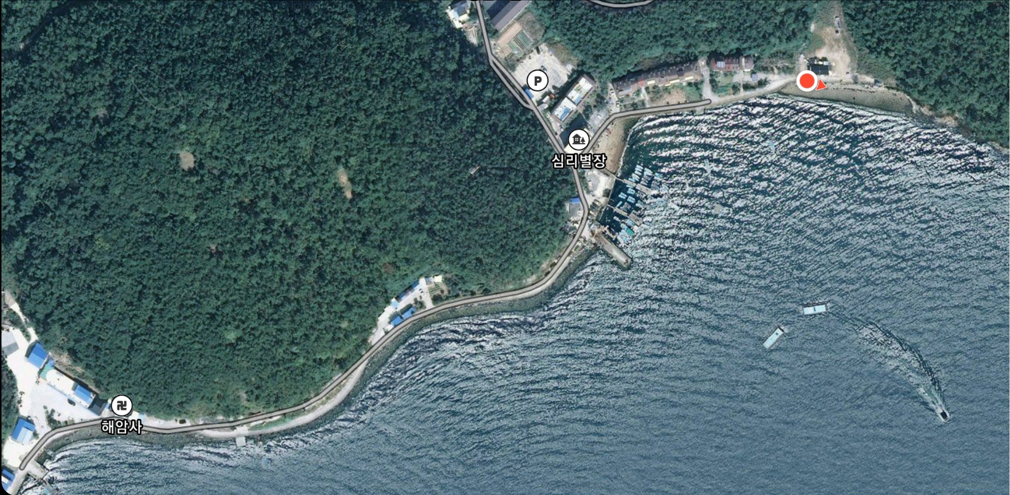 남해바다쪽으로 가기로 결정하고, 어느 포인트에서 할 것인가 고민을 엄청 했습니다. 거제도까지는 그래도 거리가 있어 지난번 출조했던 옥계방파제에서 더 내려간 원전항으로 가 보기로 하며 출발합니다. 그리고, 원전항 인근 낚시방에서 미끼를 구입하며 포인트 문의를 하니 심리별장쪽 바닷가가 나을거라는 귀뜸을 해 주셔서 일단 가보기로 합니다. 작은 마을이지만 숙박시설이 많아 차들이 많이 주차되어 있더군요. 방파제쪽은 작은데다가 이미 사람들이 자리 잡고 있고, 원투낚시를 할만한 포인트가 아닙니다.