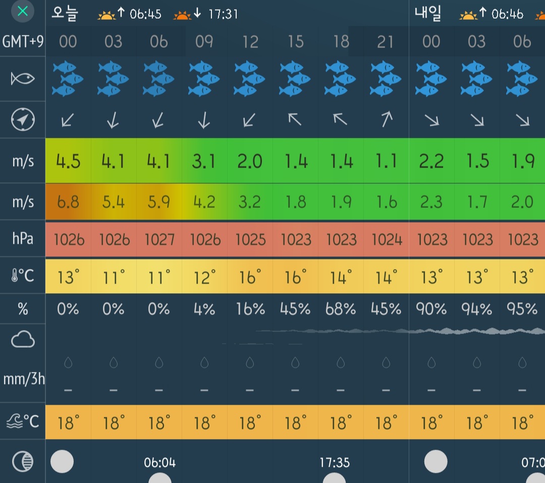 바람도 나쁘지 않습니다. 아침바람이 조금 있겠지만, 이후로는 바람이 거의 없다시피 하겠네요.