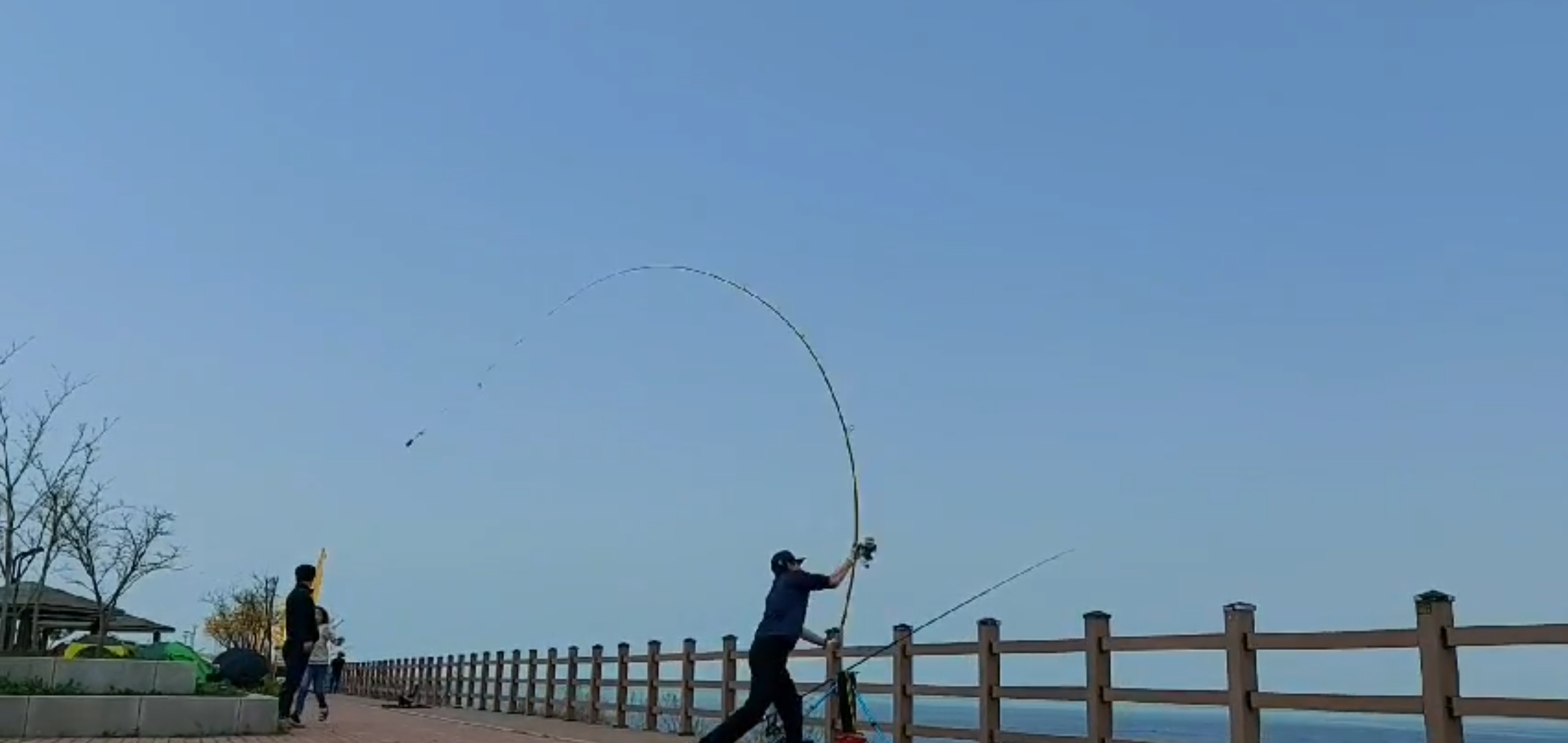 캐스팅 초보라 로드의 탄성을 완전하게 이용하지 못하고 있지만, 충분한 휨세를 보이는 듯 합니다.