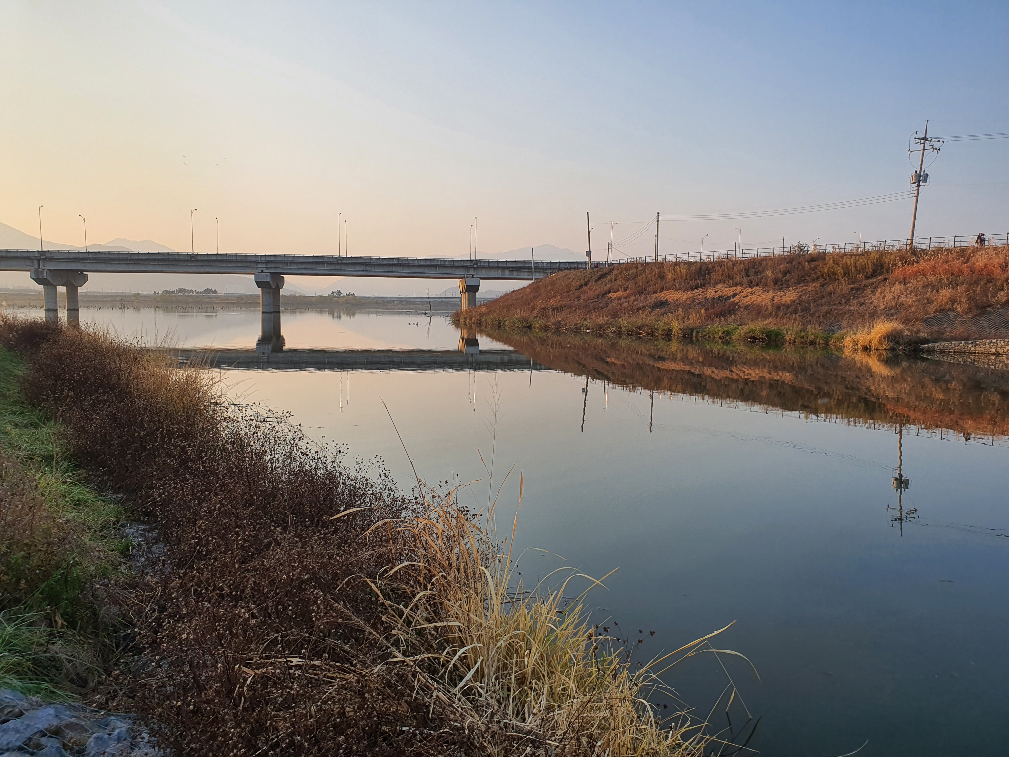 오른쪽으로는 작은 보가 형성되어 있고 보 위쪽으로는 물이 거의 없어 낚시하기에는 어려워 보이더군요.