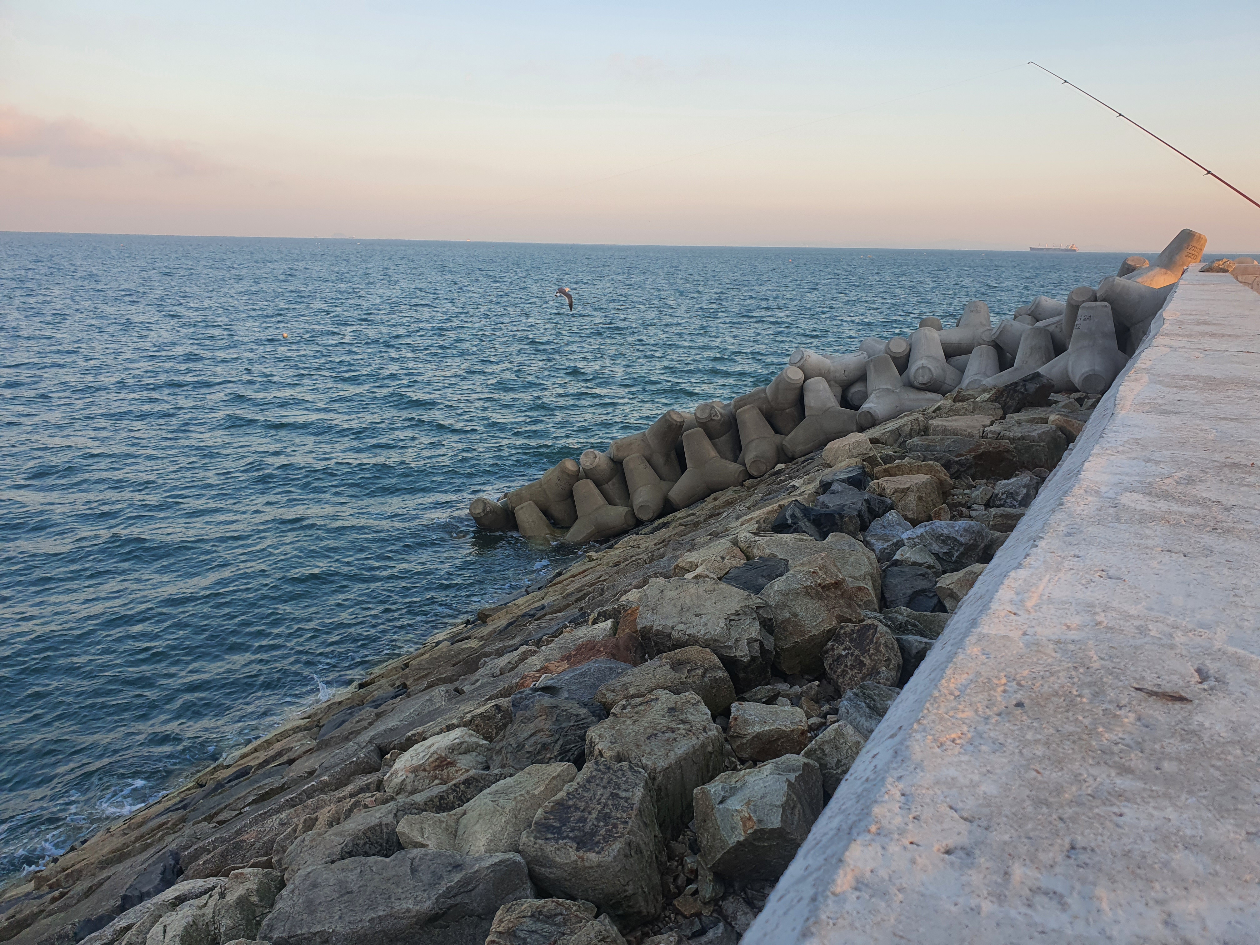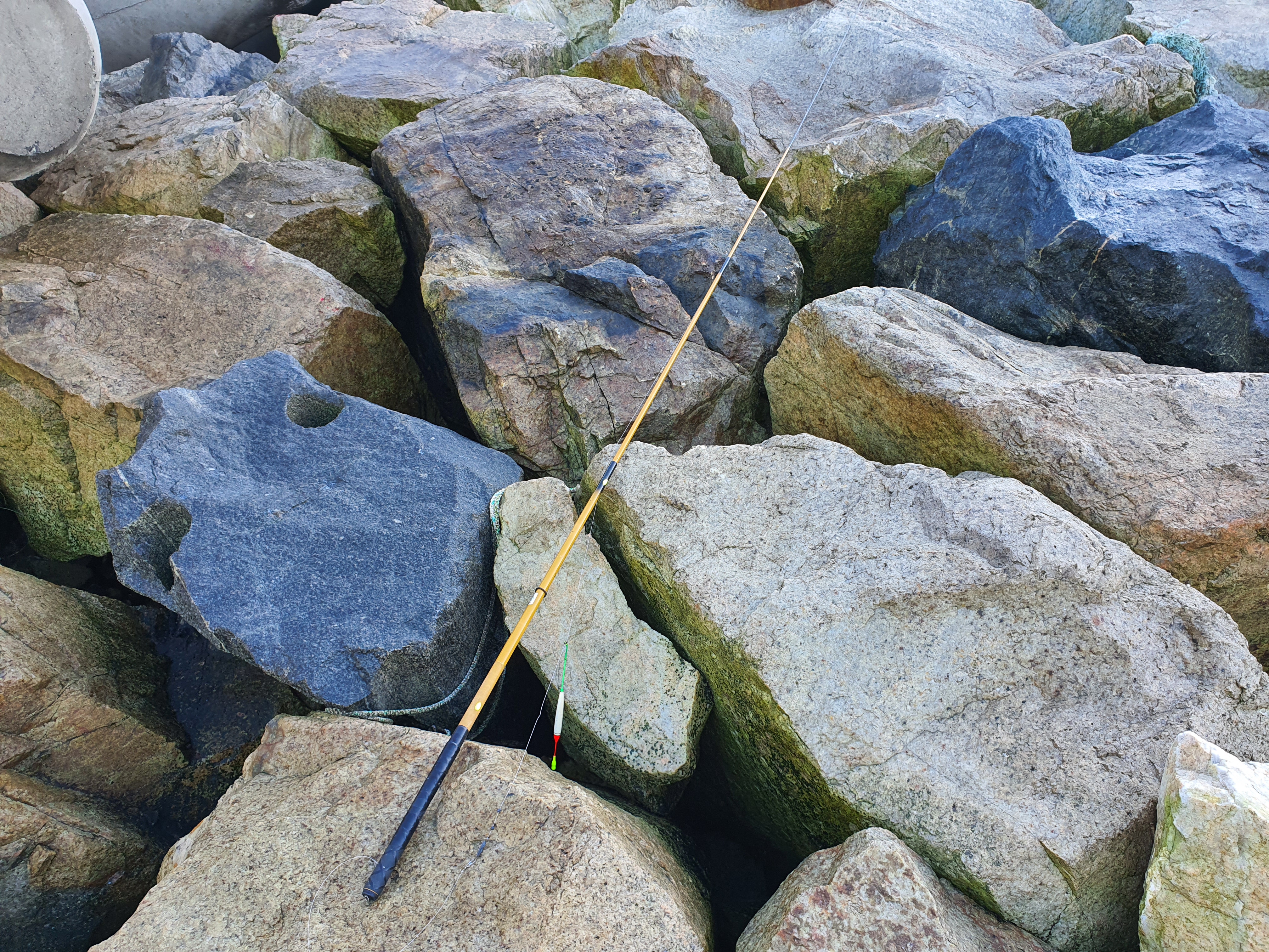 외항쪽을 치다가 내항쪽으로도 캐스팅 해 봤지만 피차일반 입질이 없습니다. 다시 외항쪽으로 옮기고, 차에 있는 민장대가 생각이 나서 찌낚시를 도전해 보기로 합니다.