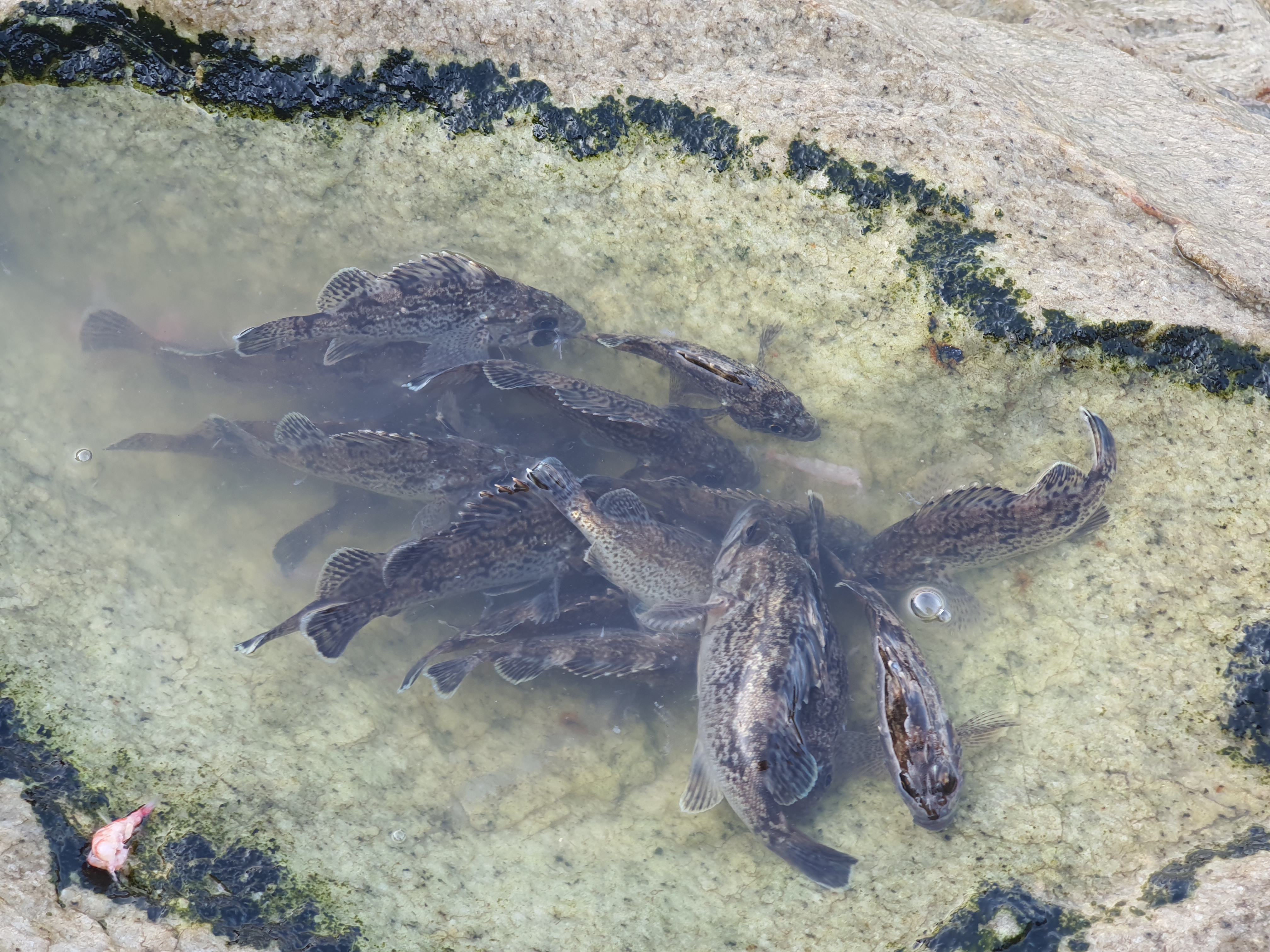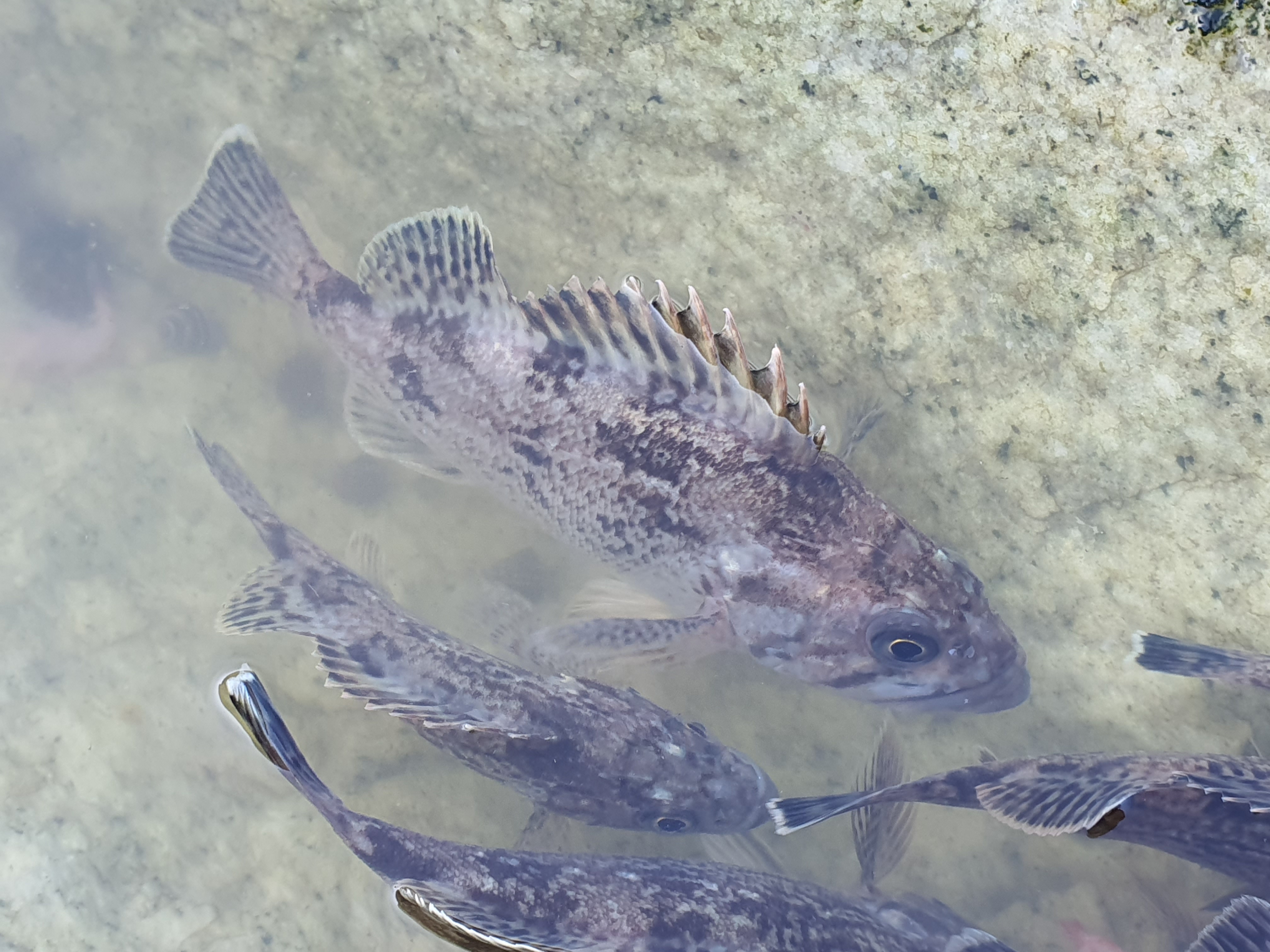 대부분 애럭들이 올라왔지만, 간간히 2짜초반 수준의 사이즈도 올라옵니다. 석축에 형성된 자연 바칸에 한마리 한마리 모았는데, 15분동안 조과가 바로 위의 사진입니다.