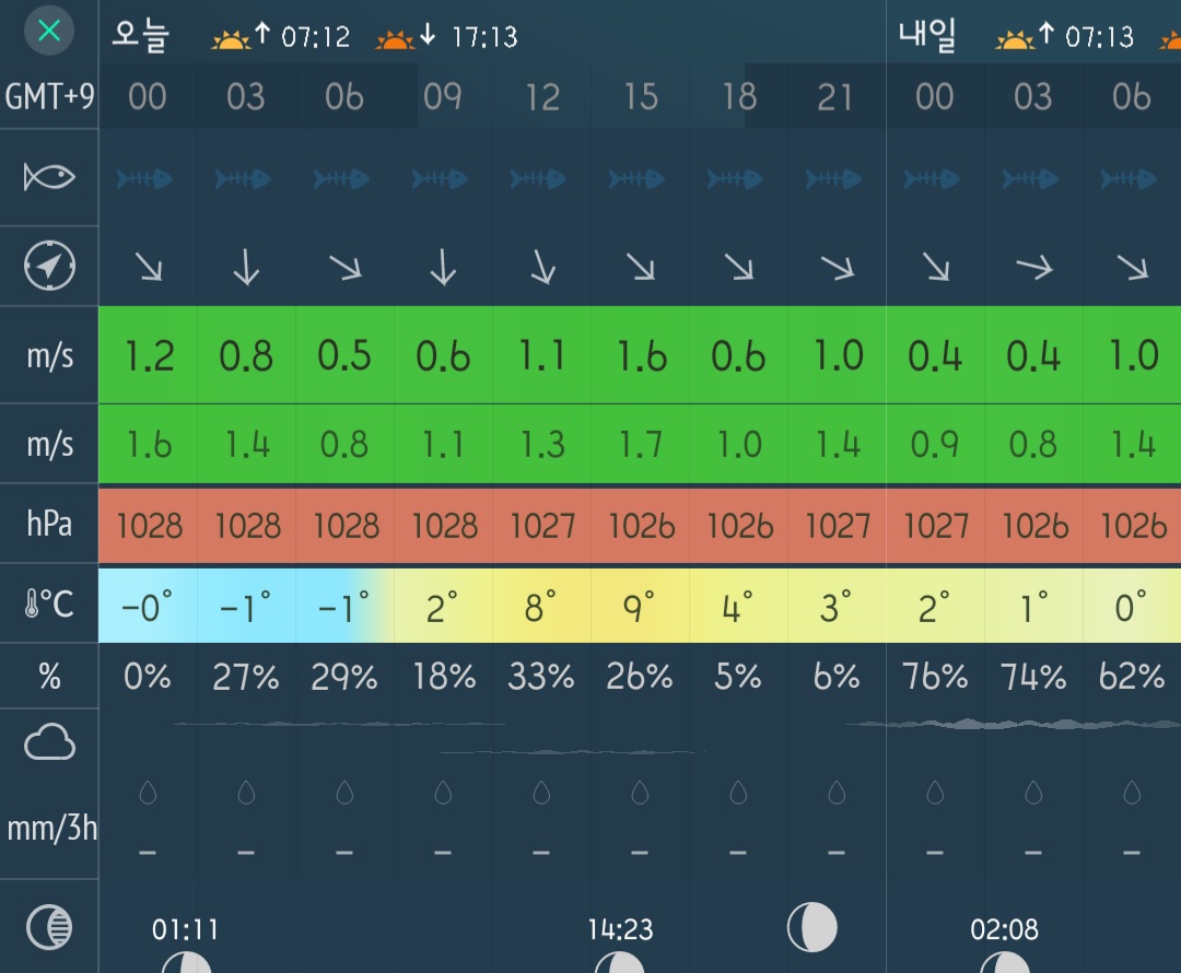바람은 거의 없고, 날씨도 그리 많이 춥지 않아 던지기에는 좋았습니다.