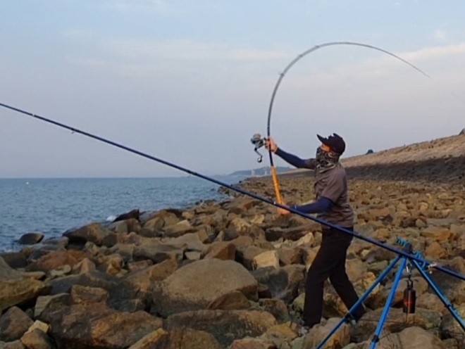 강한 허리힘과 부드러운 초리로 더 멀리 캐스팅이 됨과 동시에 입질 파악이 아주 용이한 로드이네요.