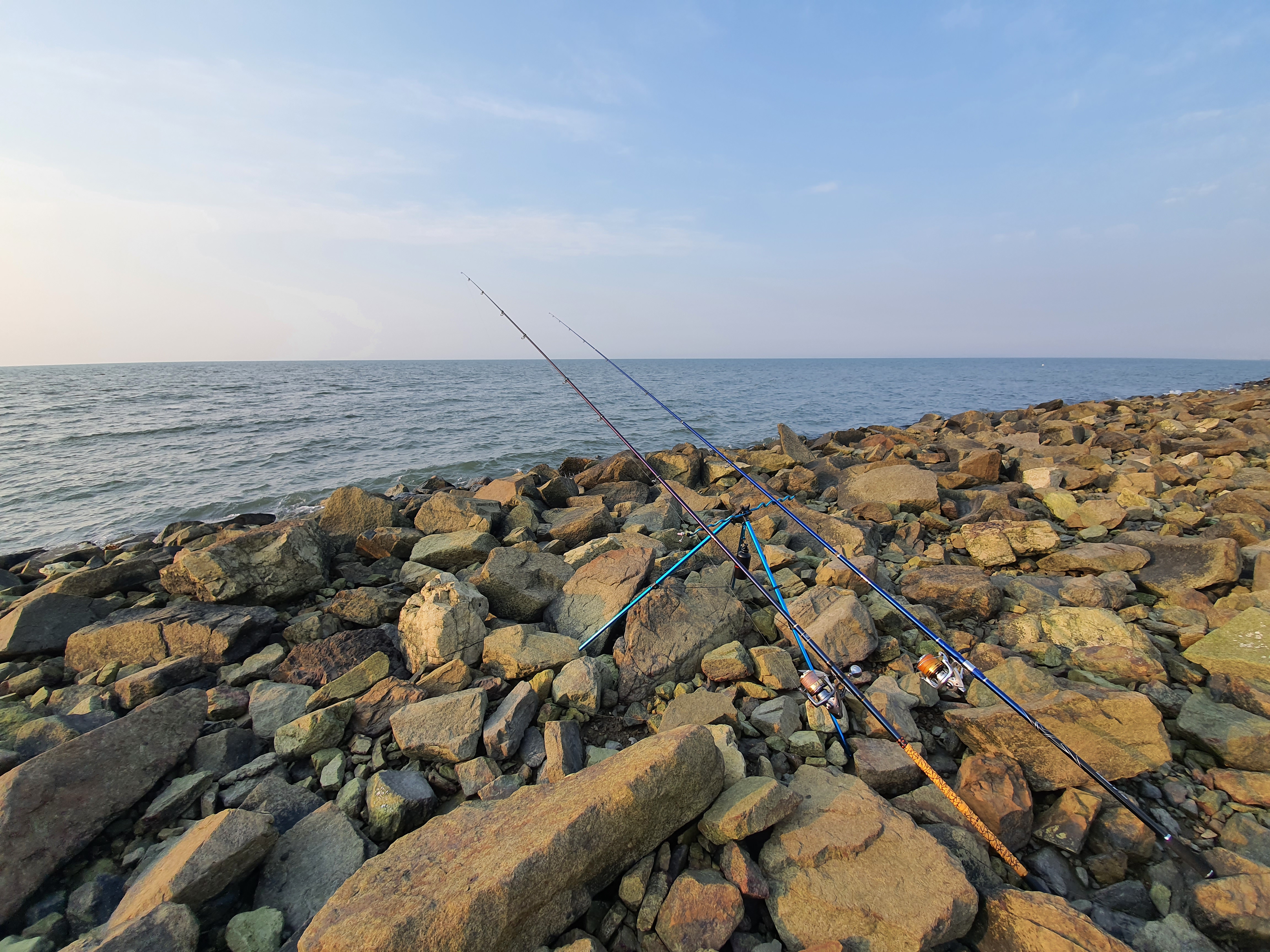 석문방조제는 만조 전후 약 2시간, 총 4시간 원투를 즐길 수 있고, 2단 석축이 드러나면 내려가서 루어를 주로 하지요.