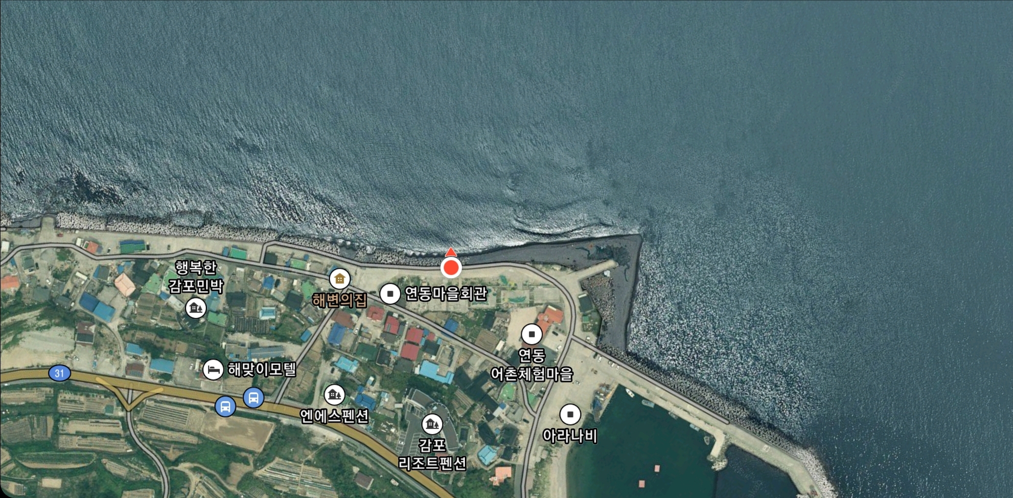 첫번째 자리잡은 포인트는 경주 감포 연동방파제 인근 포인트입니다. 차를 주차하고 바로 옆에서 낚시를 할 수 있는 좋은 포인트이더군요.