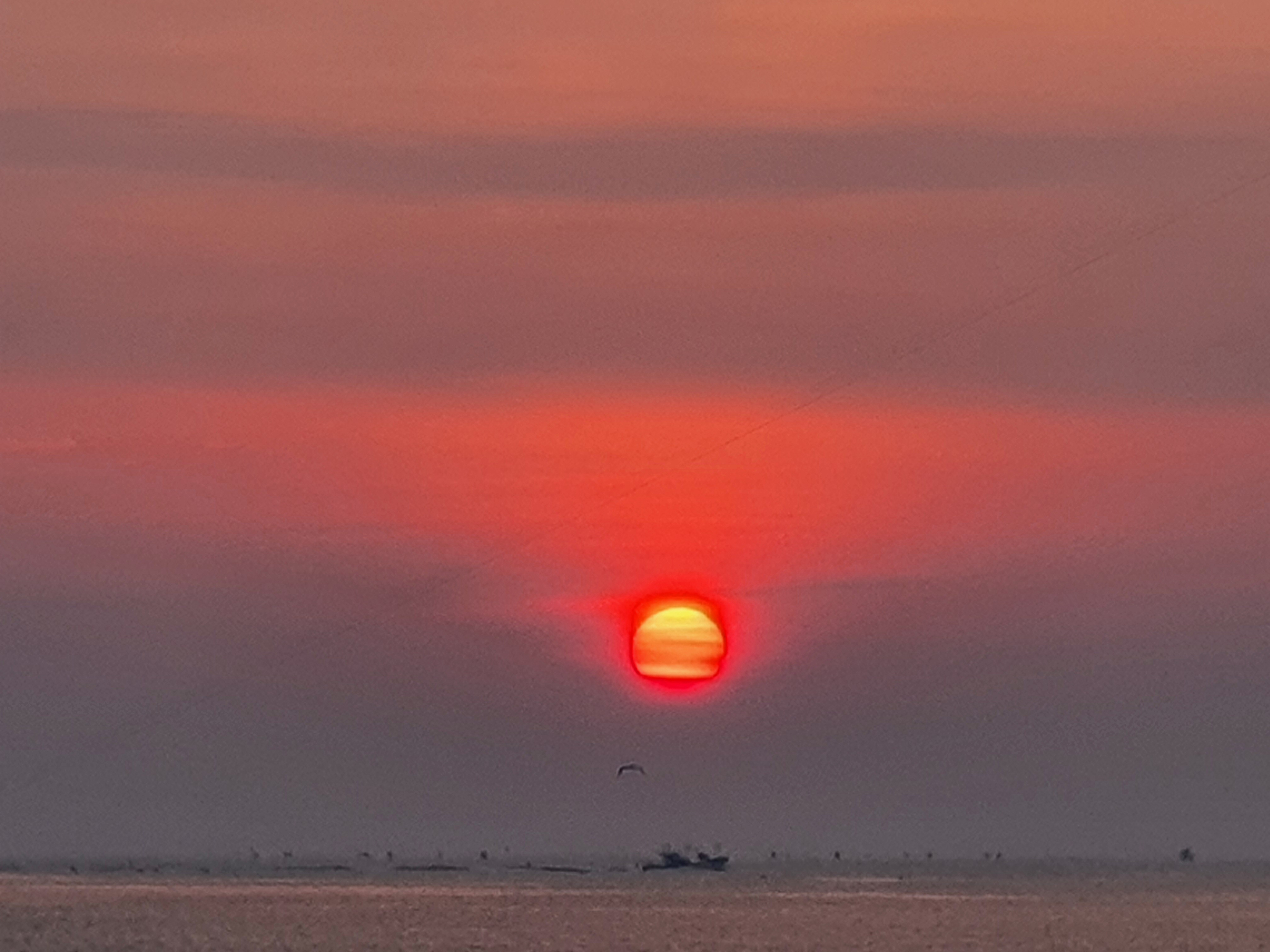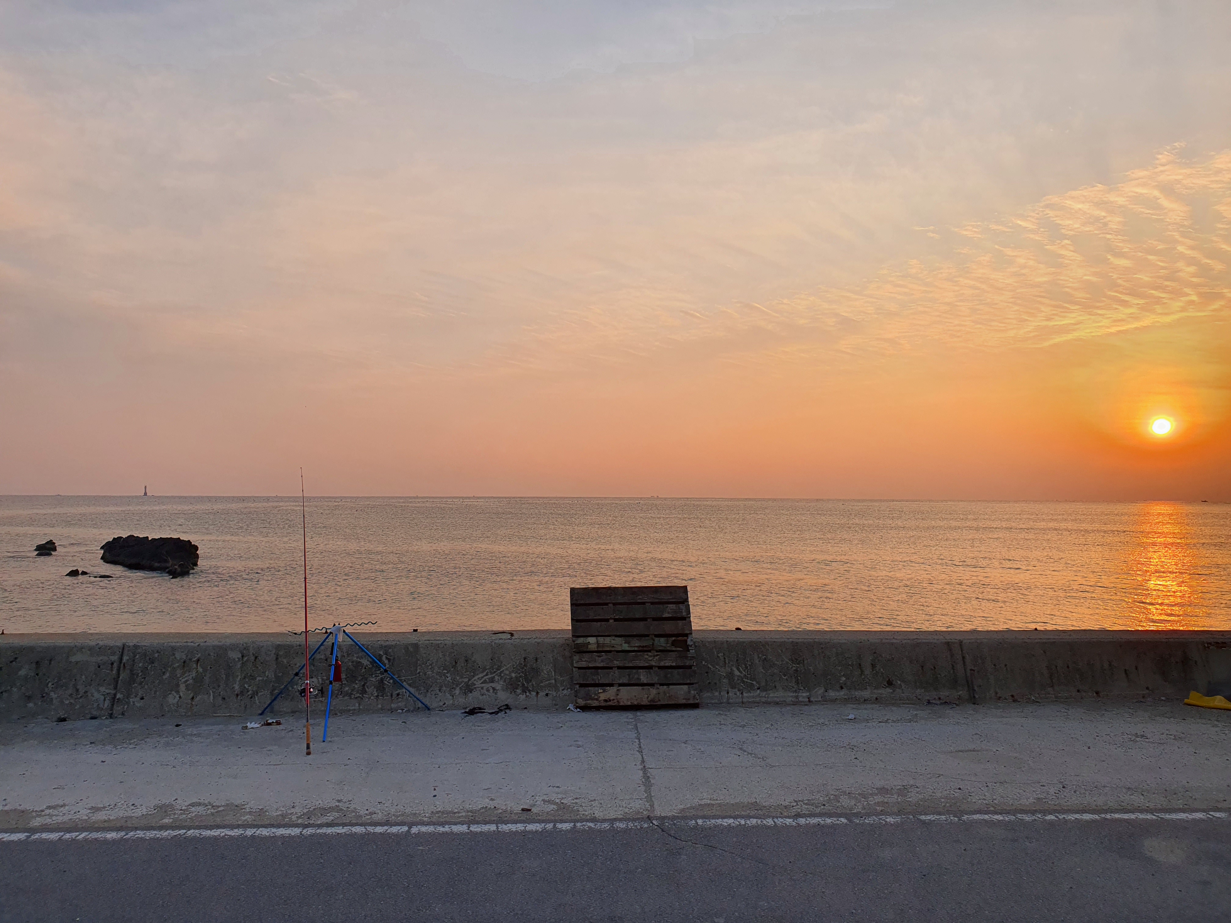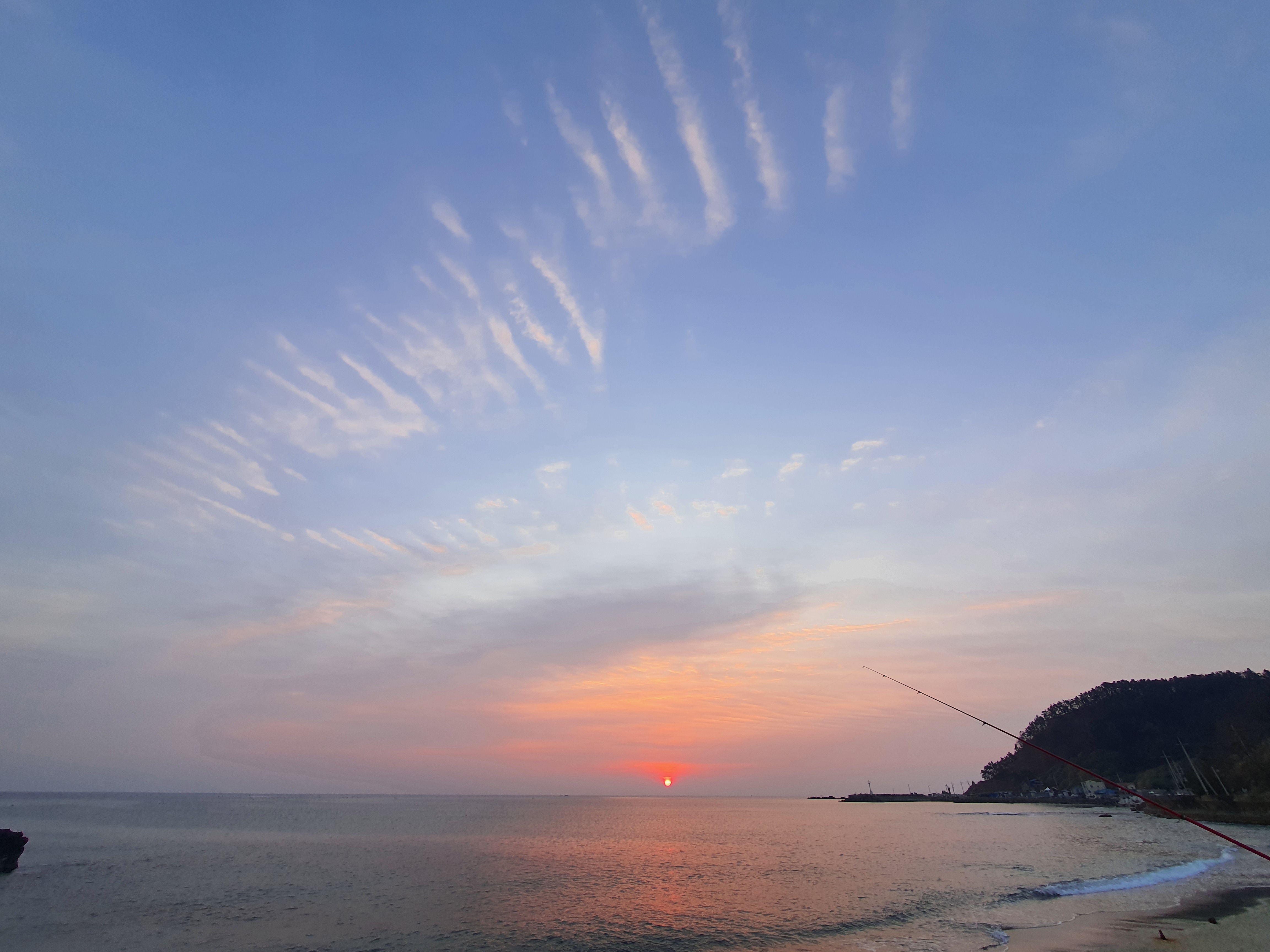 아쉬움을 뒤로하고 쪼아봤지만, 보리멸인지 복어인지 모를 잘잘한 입질과 회수하면 없어지는 미끼도둑에 시달리다가 떠오르는 해돋이를 보고 힐링을 합니다.