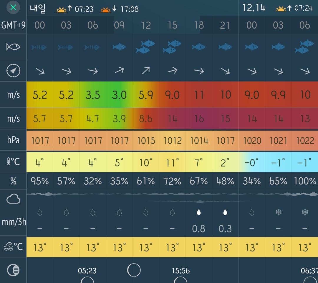 □ 바다상황 : 바람 3단 이하, 파도 조금, 물색 좋음