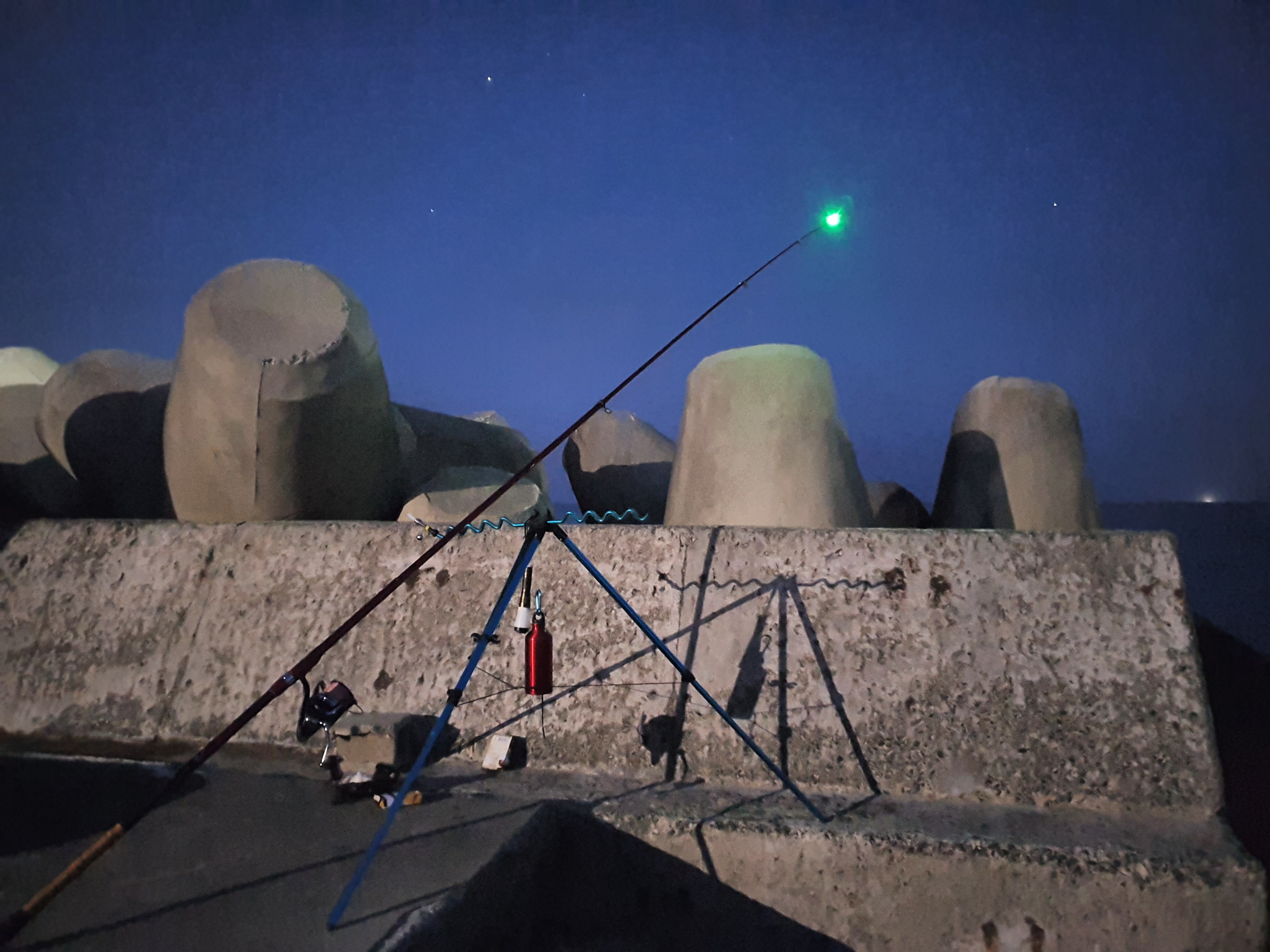 얼마지 않아 해는 지고 밤낚시 모드로 진입합니다. 이곳에는 바로 옆에 가로등이 없다보니 매우 어둡습니다. 포인트는 여밭이 많아 밑걸림은 있더군요. 조심해야겠다 생각하며, 한참을 하다보니 캐스팅된 곳에서 줄보기캐미의 불빛이 보입니다. 수심이 그만큼 안나온다는 의미라 다른 포인트로 이동을 강행합니다.