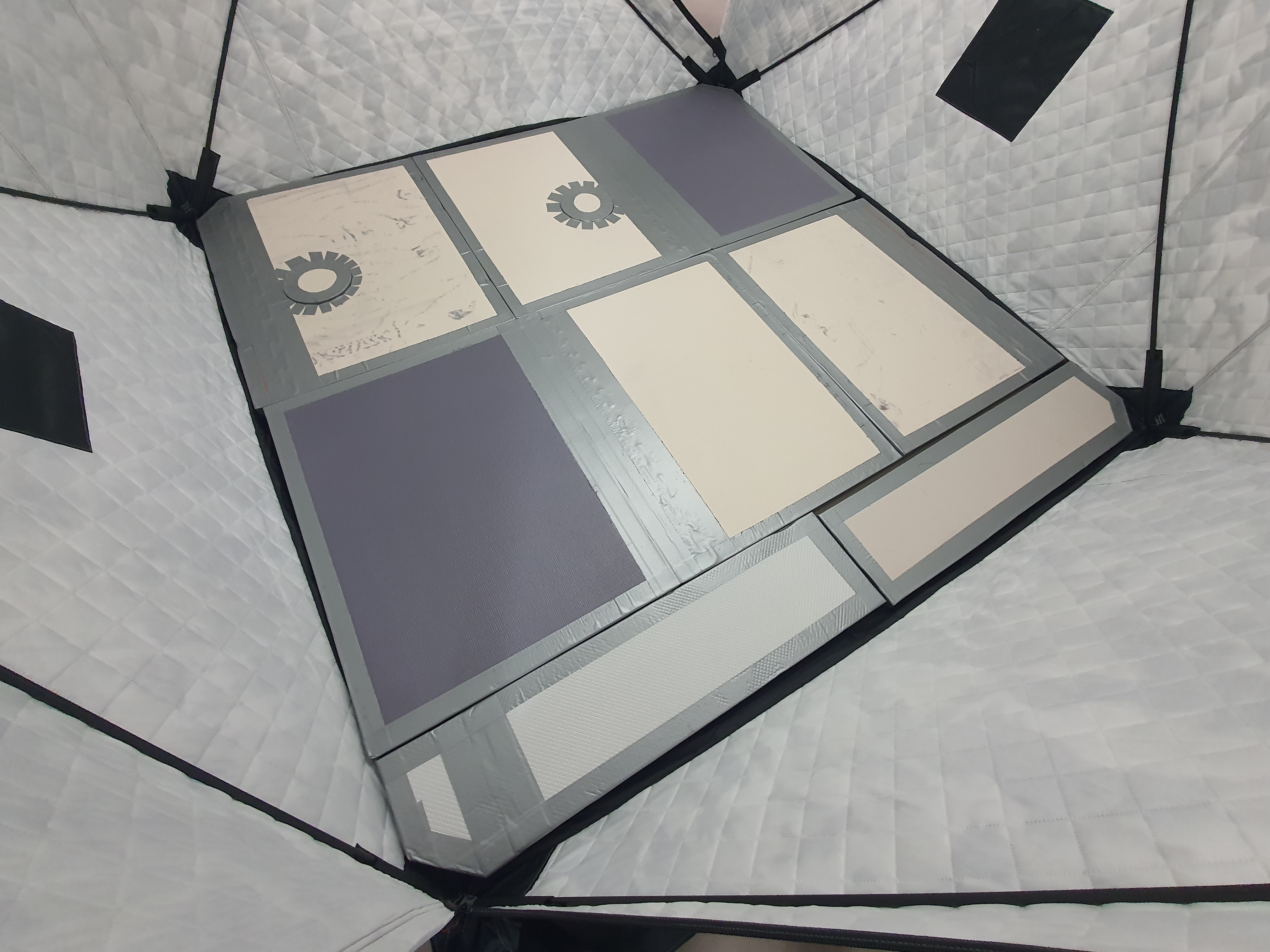 지난 시즌에 사용하던 큐브텐트에는 내부스커트가 없어 차가운 기운이 바닥안쪽으로 들어오는데, 누빔텐트는 난방에 좀 더 효율적이지 않을까 예상합니다.