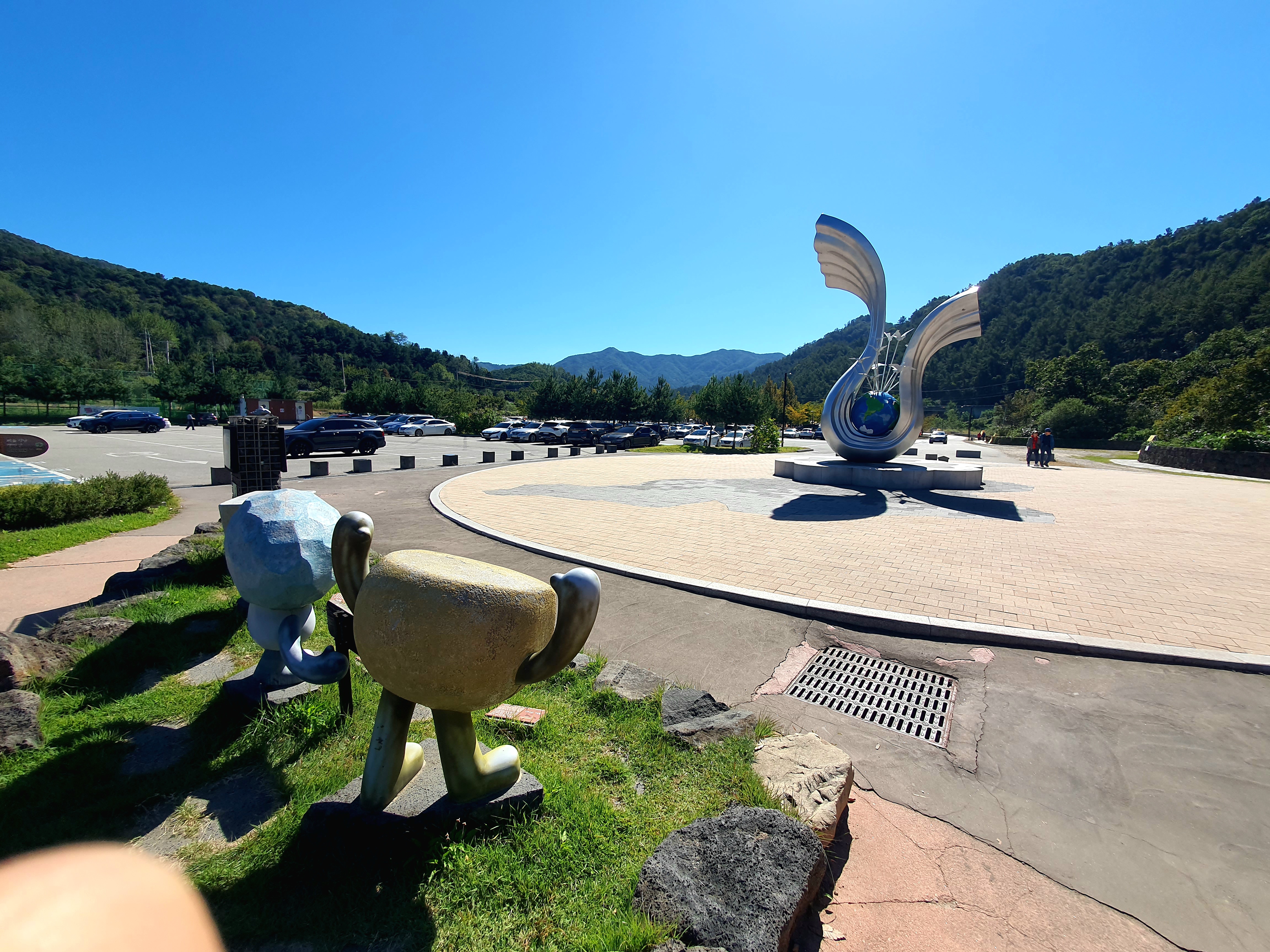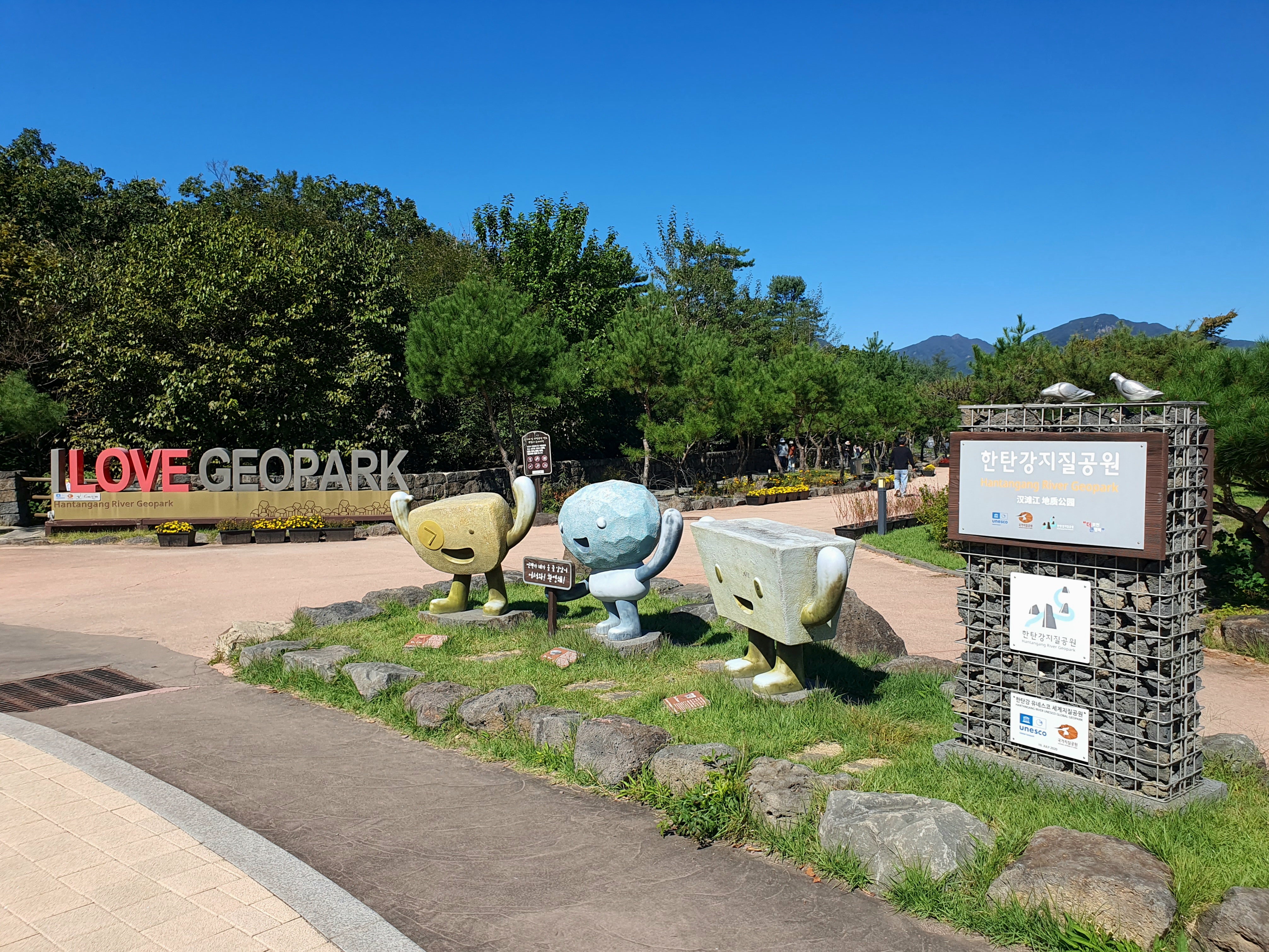 주차를 하고 나서 한탄강세계지질공원 입구에 조형물들이 반겨줍니다. 공원은 무료입장이라 그냥 들어가면 됩니다.