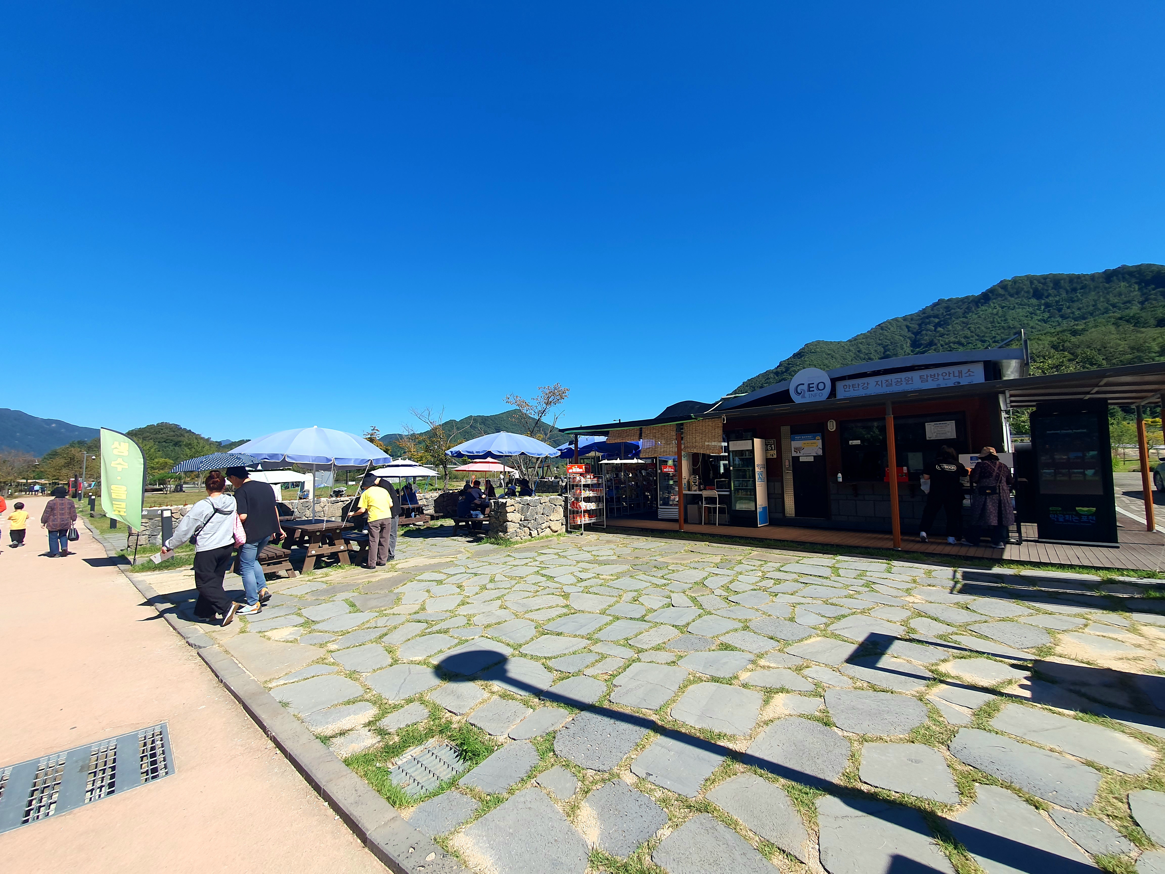 한탄강 하늘다리 초입입니다. 넓은 광장에 안내소와 화장실이 있고, 먹거리도 일부 운영되고 있더군요.