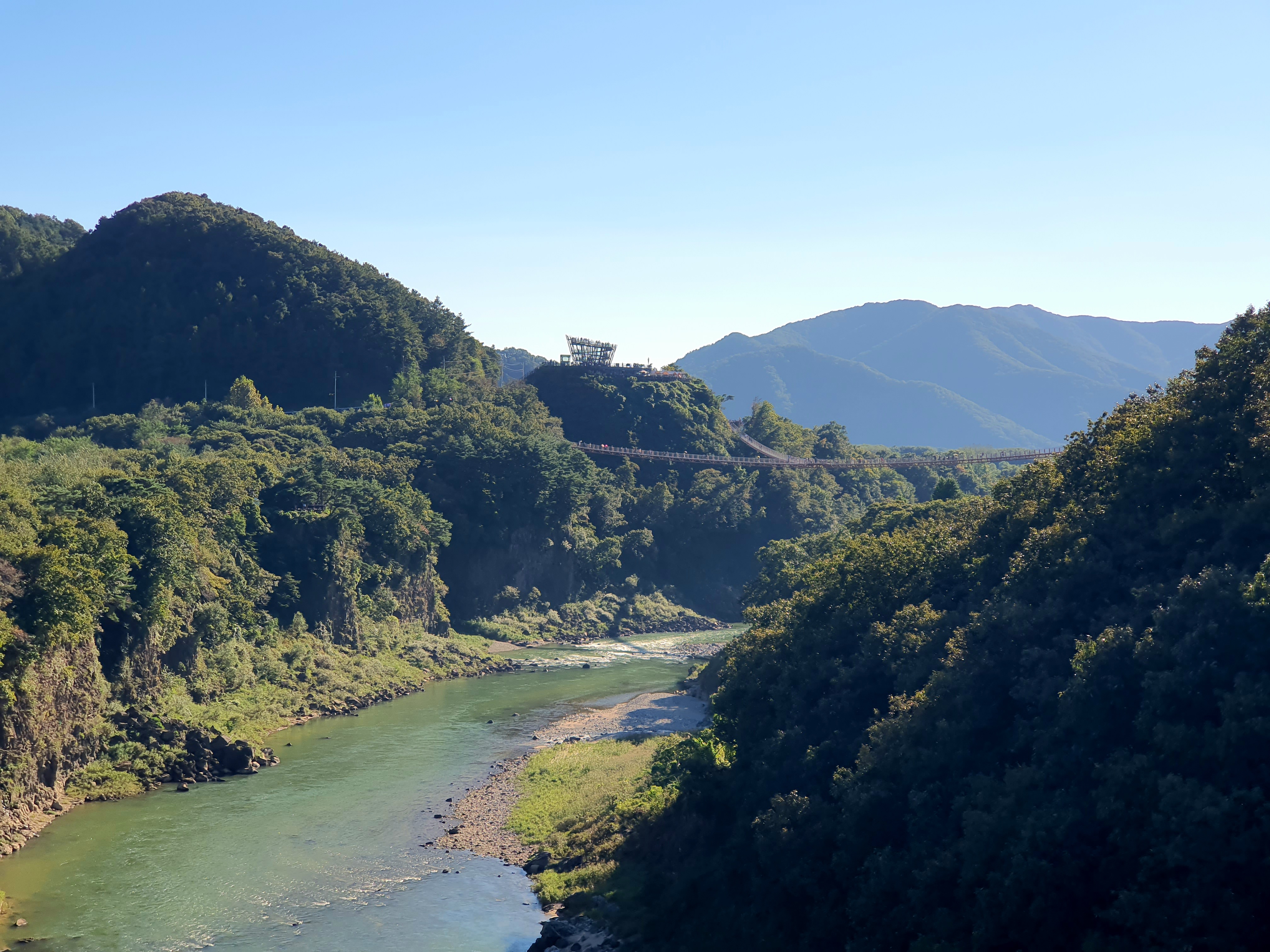 한탄강세계지질공원의 전망대와 그 옆으로 Y형 출렁다리가 보이네요.