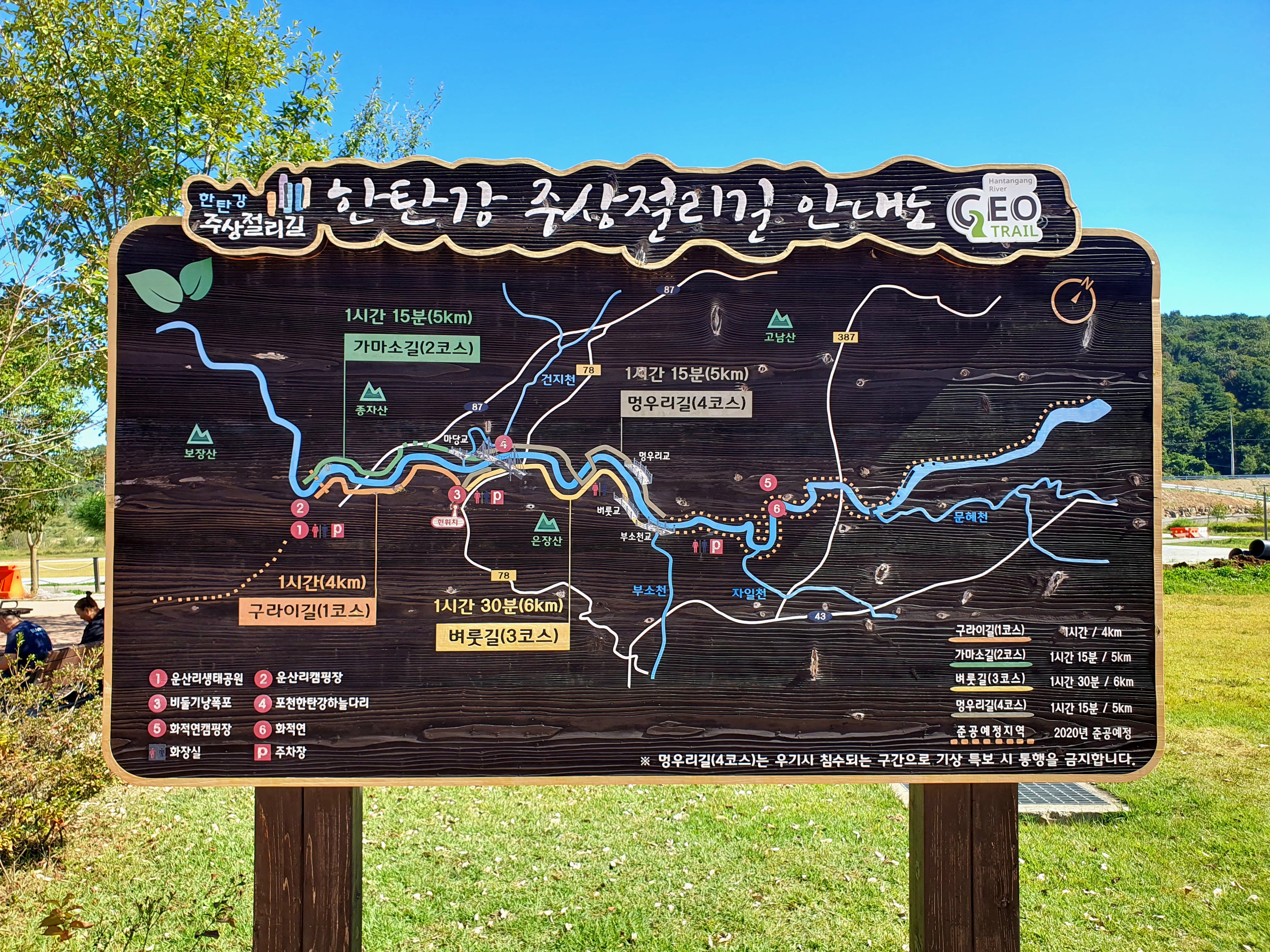주차는 한탄강세계지질공원센터를 찍고 갔는데, 지질공원센터가 공원과는 꽤 먼 거리에 있어서, 지질공원센터쪽 주차장이 아닌 한탄강세계지질공원쪽 캠핑장과 함께 있는 주차장에 주차를 하면 됩니다.