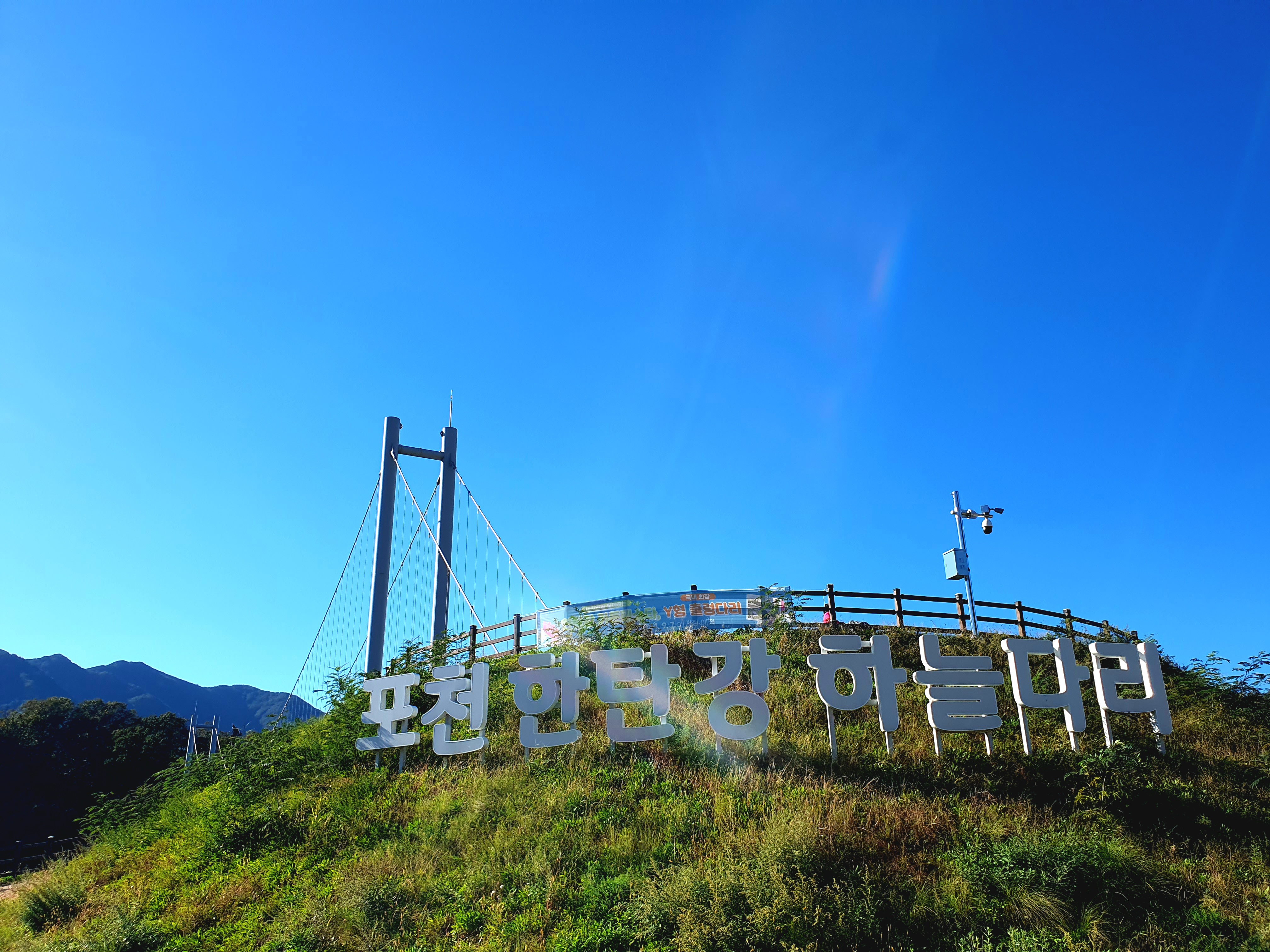 한탄강세계지질공원 전망대에서 봤던 한탄강 하늘다리를 가 봤는데요. 지질공원에서 걸어서 갈 수도 있고, 하늘다리 주차장이 따로 있어서 차로 이동해서 무료주차장을 이용해도 됩니다.
