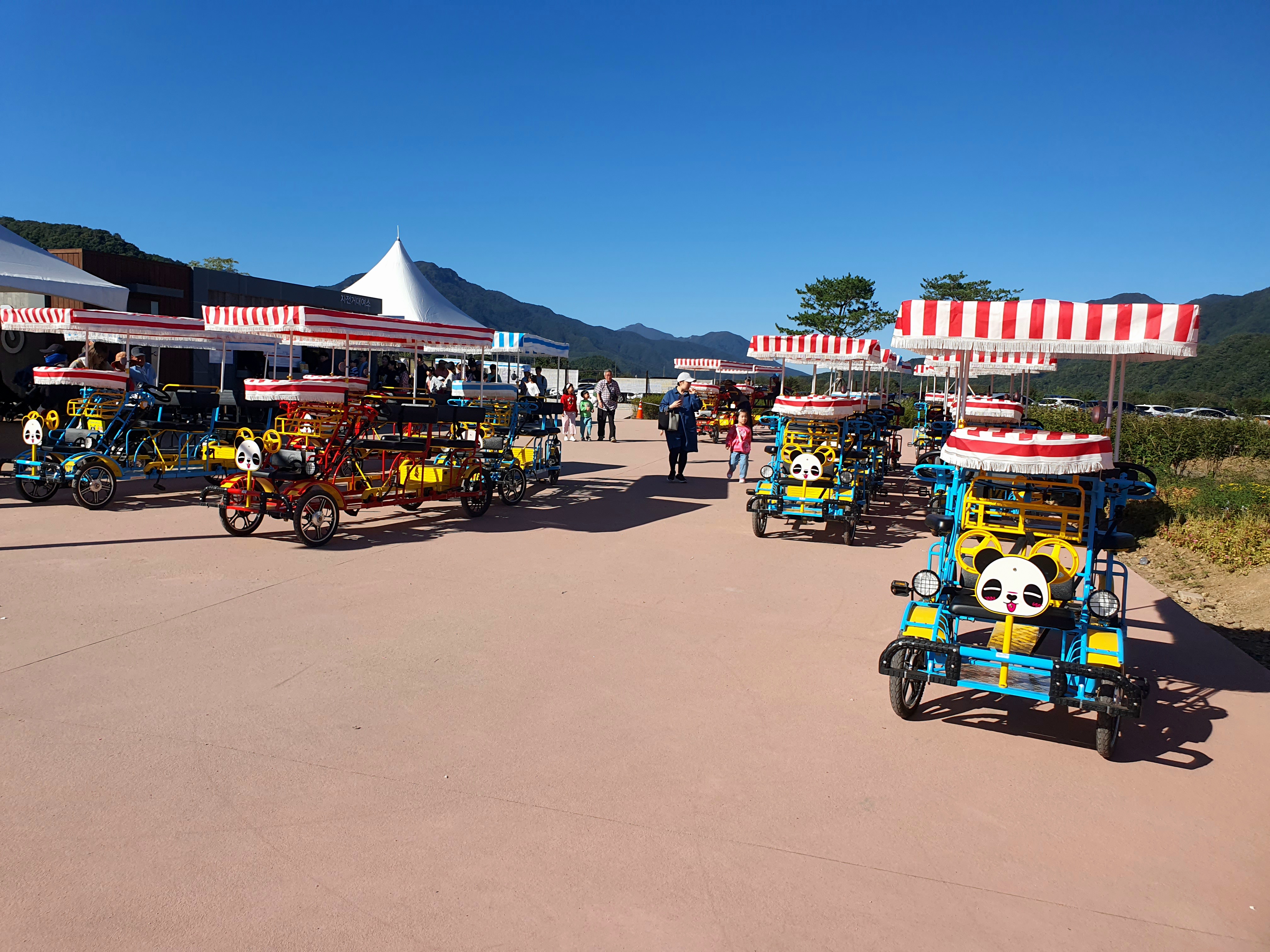 입구에서 대여한 자전거를 타고 다니는 모습도 보입니다.